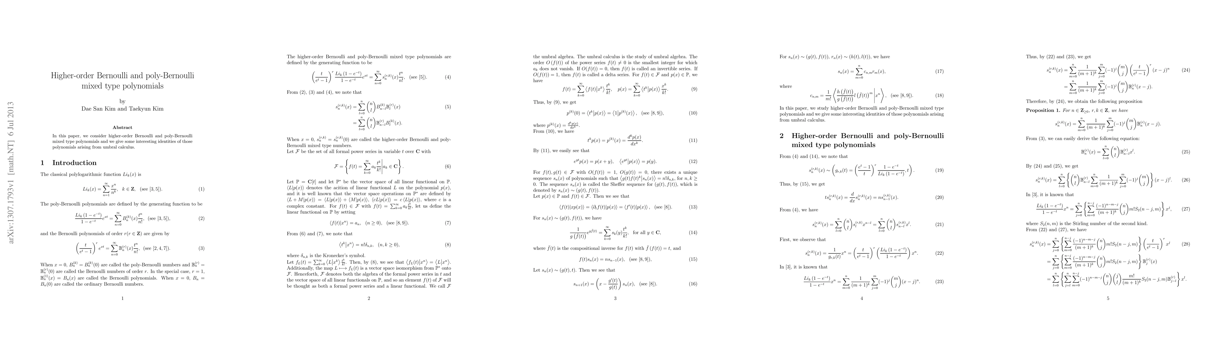 Summary: This paper explores higher-order Bernoulli and poly-Bernoulli mixed type polynomials, revealing intriguing identities derived from umbral calculus. The findings contribute to the understanding of these complex mathematical structures.