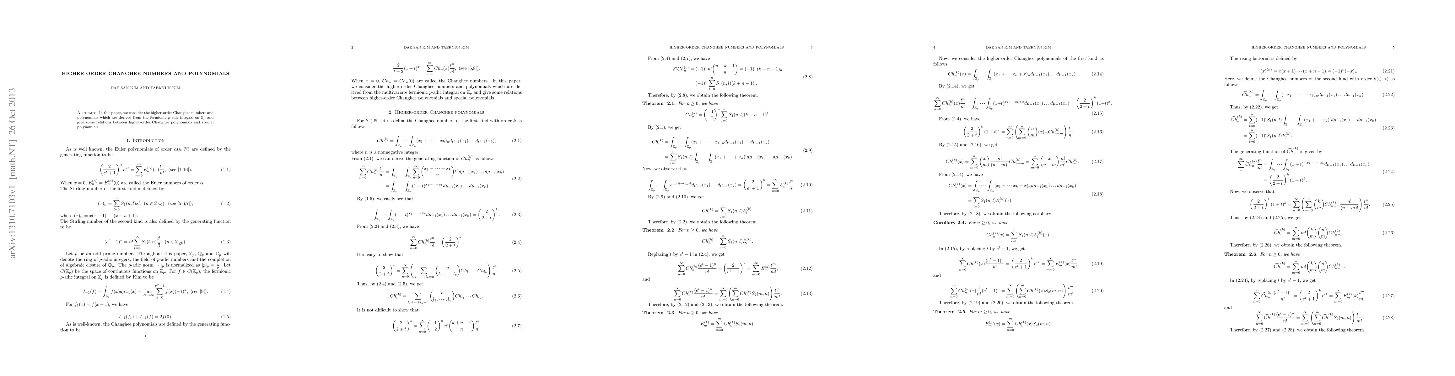 Summary: This paper explores higher-order Changhee numbers and polynomials derived from the fermionic p-adic integral on Zp, establishing relationships between these and other special polynomials.