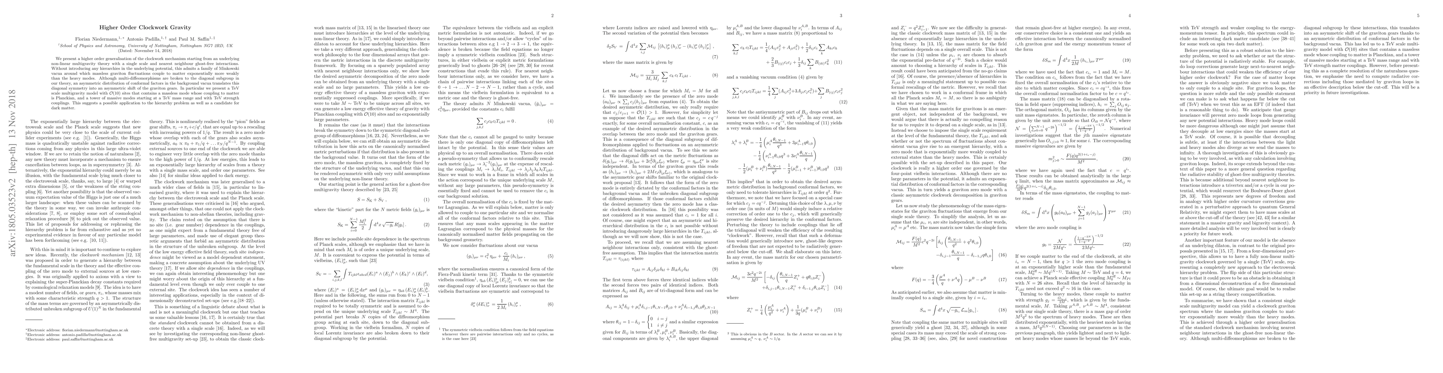 We present a higher order generalisation of the clockwork mechanism starting from an underlying non-linear multigravity theory with a single scale and nearest neighbour ghost-free interactions. Without introducing any hierarchies in the underlying potential, this admits a family of Minkowski vacua around which massless graviton fluctuations couple to matter exponentially more weakly than the heavy modes. Although multi-diffeomorphisms are broken to the diagonal subgroup in our theory, an asymmetric distribution of conformal factors in the background vacua translates this diagonal symmetry into an asymmetric shift of the graviton gears. In particular we present a TeV scale multigravity model with ${\cal O}(10)$ sites that contains a massless mode whose coupling to matter is Planckian, and a tower of massive modes starting at a TeV mass range and with TeV strength couplings. This suggests a possible application to the hierarchy problem as well as a candidate for dark matter.