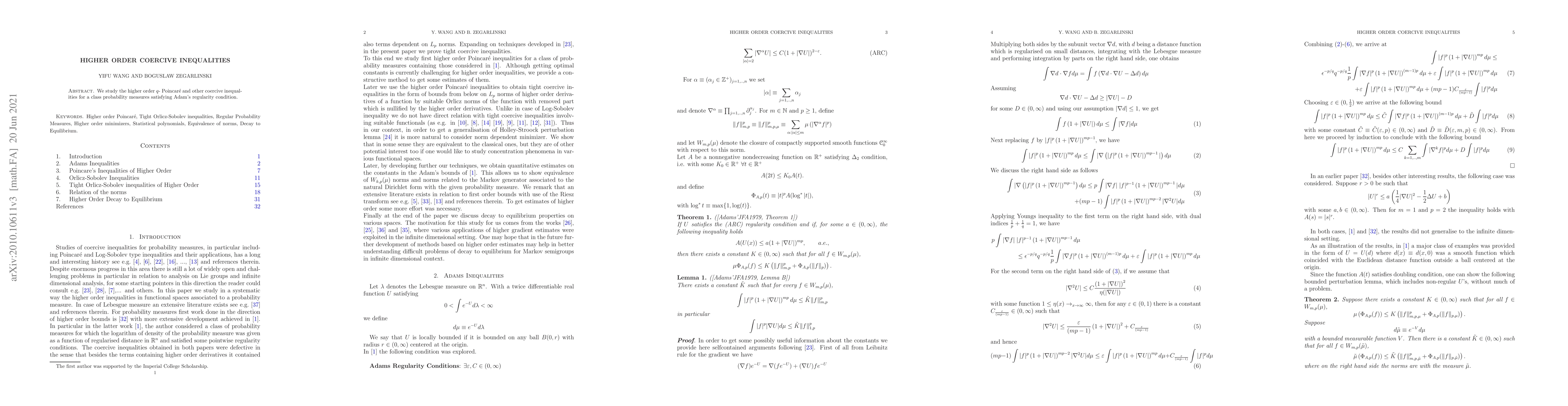 We study the higher order q- Poincar\'e and other coercive inequalities for a class probability measures satisfying Adam's regularity condition.