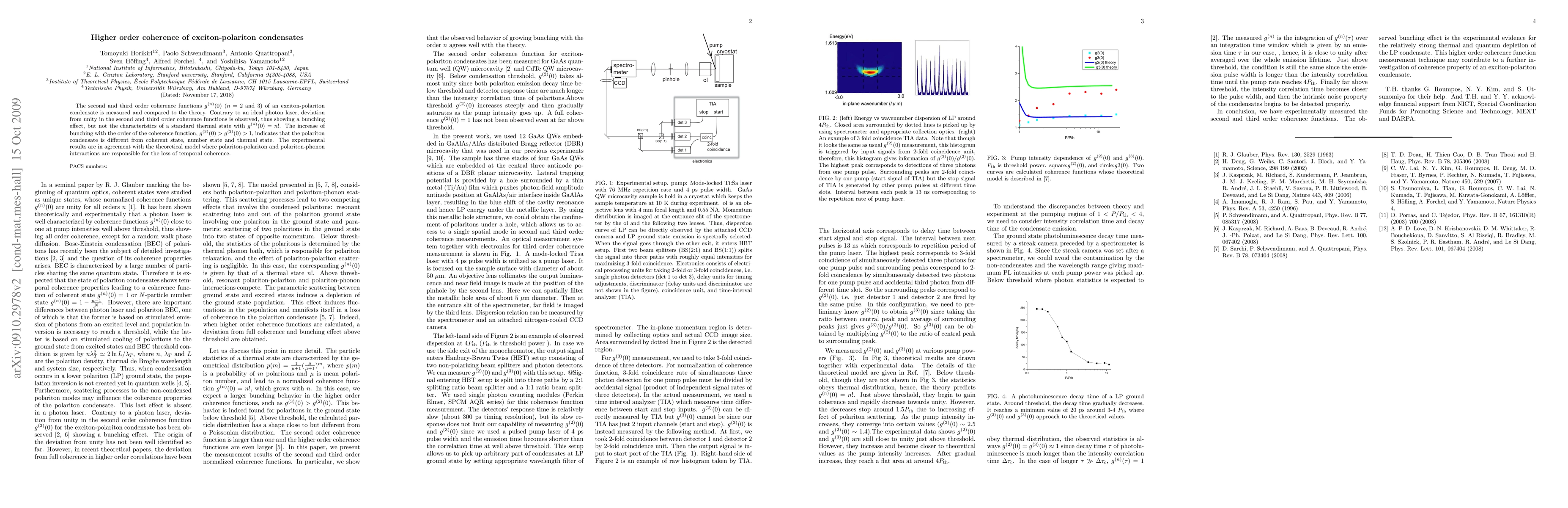 This study measures the second and third order coherence functions of exciton-polariton condensates, revealing a bunching effect that deviates from unity and differs from both coherent and thermal states. The results align with a theoretical model attributing the loss of coherence to polariton-polariton and polariton-phonon interactions.