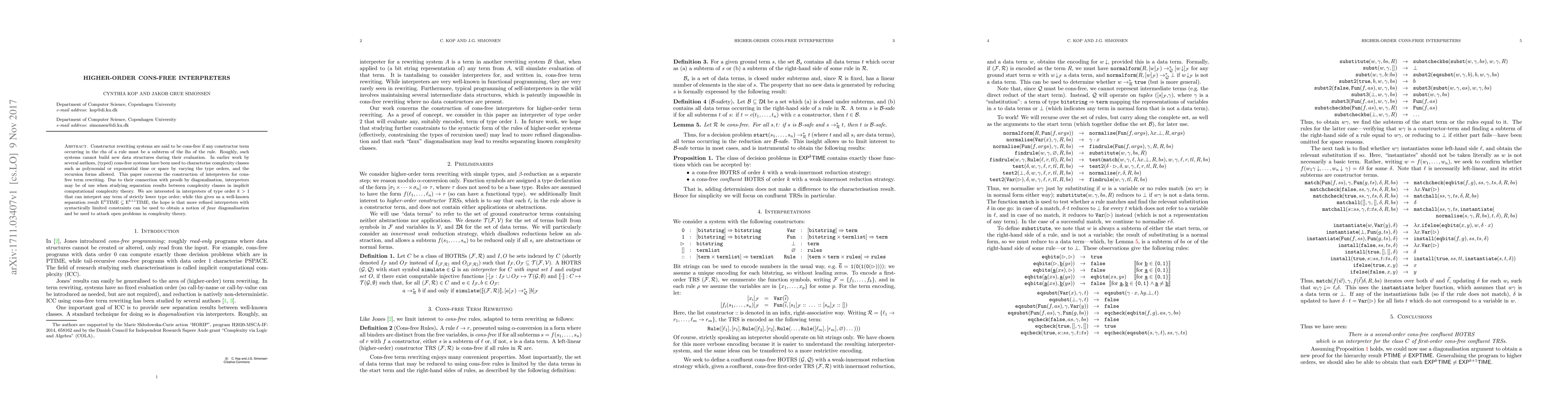 This paper develops higher-order cons-free interpreters for term rewriting systems, aiming to explore separation results in computational complexity theory. These interpreters, of type order $k > 1$, can interpret terms of lower type orders, potentially enabling new approaches to longstanding complexity theory problems.