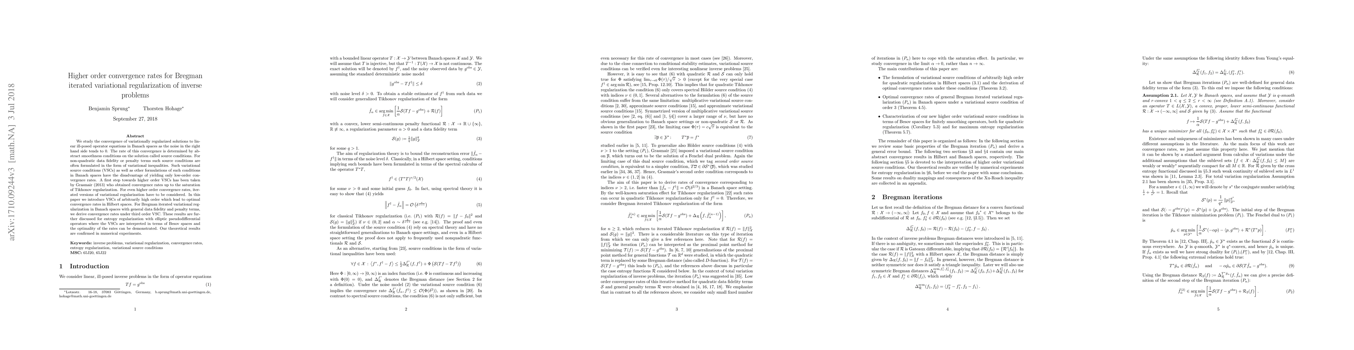 This paper introduces higher-order convergence rates for Bregman iterated variational regularization of inverse problems, achieving optimal rates in Hilbert spaces with third-order source conditions.