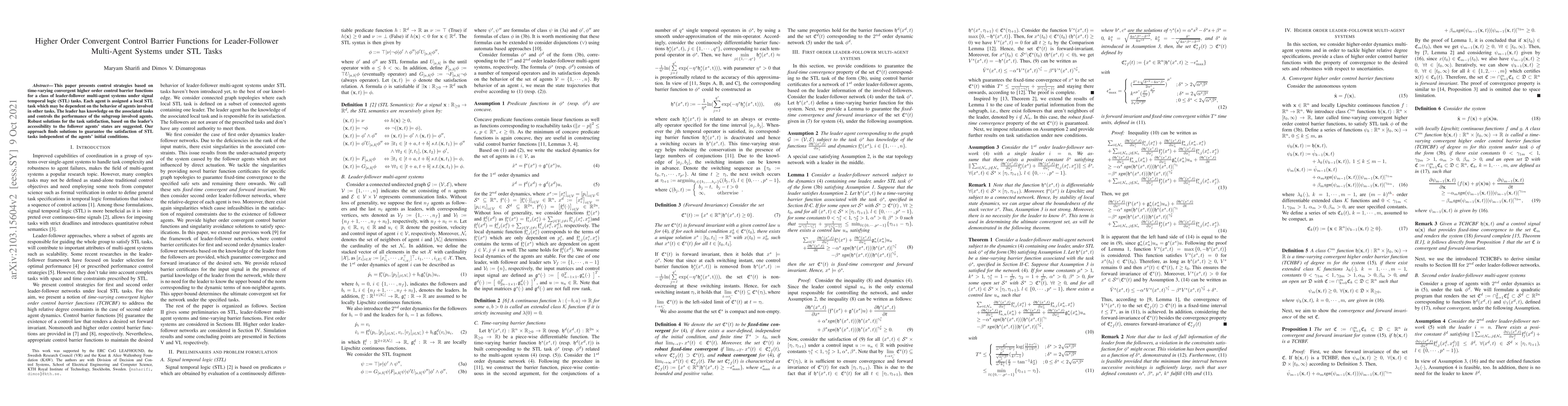 This paper proposes control strategies using higher order convergent control barrier functions for leader-follower multi-agent systems executing signal temporal logic tasks. It ensures robust task satisfaction regardless of initial conditions, leveraging the leader's knowledge of follower agents' states.