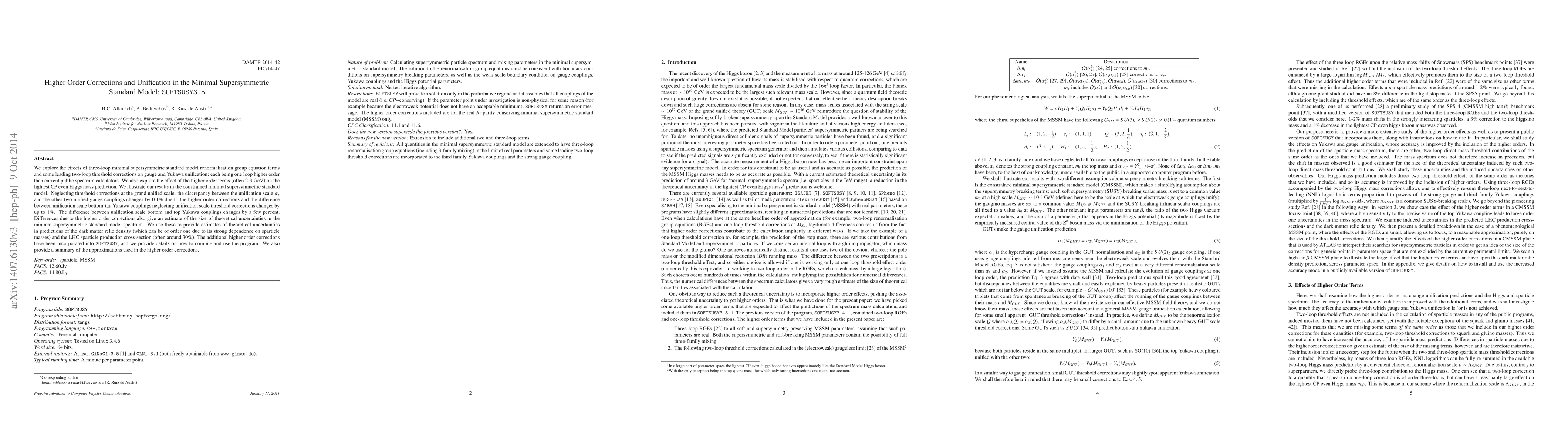 We explore the effects of three-loop minimal supersymmetric standard model renormalisation group equation terms and some leading two-loopthreshold corrections on gauge and Yukawa unification: each being one loop higher order than current public spectrum calculators. We also explore the effect of the higher order terms (often 2-3 GeV) on the lightest CP even Higgs mass prediction. We illustrate our results in the constrained minimal supersymmetric standard model. Neglecting threshold corrections at the grand unified scale, the discrepancy between the unification scale $\alpha_s$ and the other two unified gauge couplings changes by 0.1$\%$ due to the higher order corrections and the difference between unification scale bottom-tau Yukawa couplings neglecting unification scale threshold corrections changes by up to 1$\%$. The difference between unification scale bottom and top Yukawa couplings changes by a few percent. Differences due to the higher order corrections also give an estimate of the size of theoretical uncertainties in the minimal supersymmetric standard model spectrum. We use these to provide estimates of theoretical uncertainties in predictions of the dark matter relic density (which can be of order one due to its strong dependence on sparticle masses) and the LHC sparticle production cross-section (often around 30$\%$). The additional higher order corrections have been incorporated into SOFTSUSY, and we provide details on how to compile and use the program. We also provide a summary of the approximations used in the higher order corrections.