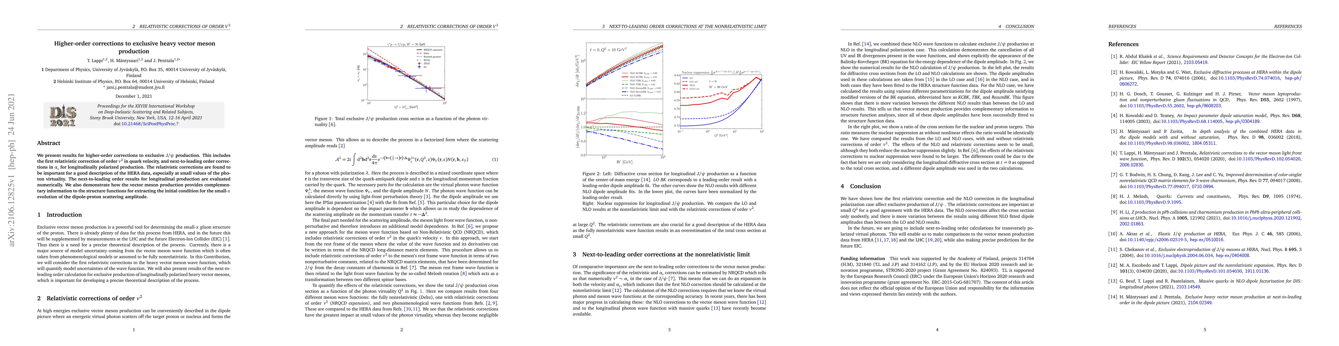 We present results for higher-order corrections to exclusive $\mathrm{J}/\psi$ production. This includes the first relativistic correction of order $v^2$ in quark velocity, and next-to-leading order corrections in $\alpha_s$ for longitudinally polarized production. The relativistic corrections are found to be important for a good description of the HERA data, especially at small values of the photon virtuality. The next-to-leading order results for longitudinal production are evaluated numerically. We also demonstrate how the vector meson production provides complementary information to the structure functions for extracting the initial condition for the small-$x$ evolution of the dipole-proton scattering amplitude.