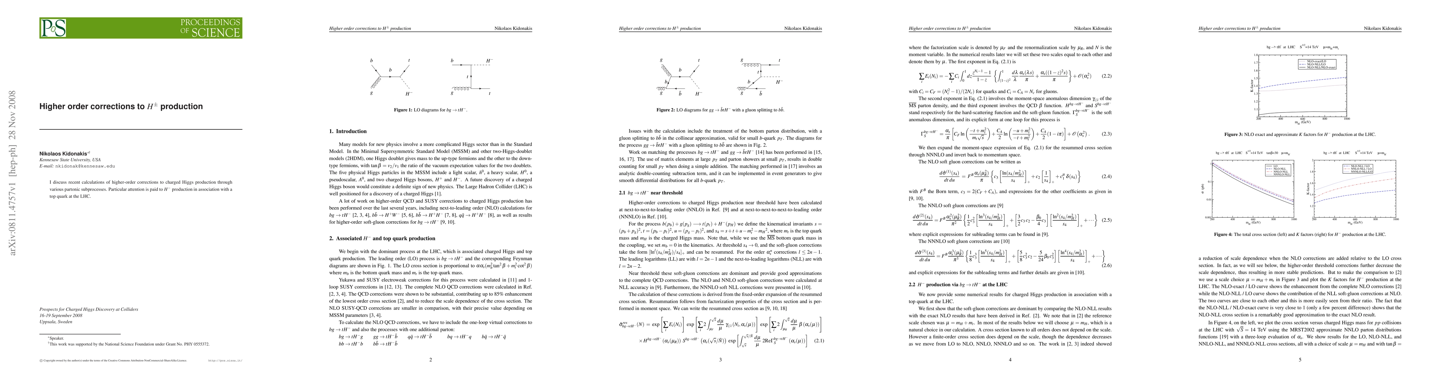 I discuss recent calculations of higher-order corrections to charged Higgs production through various partonic subprocesses. Particular attention is paid to H- production in association with a top quark at the LHC.