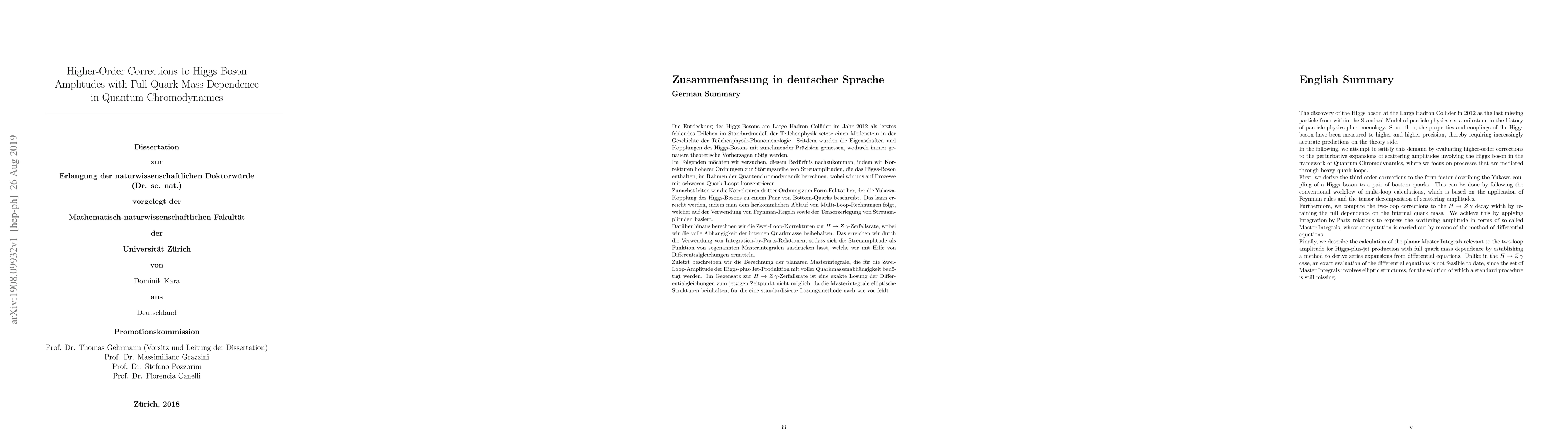 In this thesis, higher-order corrections to the perturbative expansions of scattering amplitudes involving the Higgs boson in the framework of Quantum Chromodynamics are evaluated, where we focus on processes that are mediated through heavy-quark loops. First, we derive the third-order corrections to the form factor describing the Yukawa coupling of a Higgs boson to a pair of bottom quarks. Furthermore, we compute the two-loop corrections to the $H\to Z\,\gamma$ decay width by retaining the full dependence on the internal quark mass. Finally, we describe the calculation of the planar Master Integrals relevant to the two-loop amplitude for Higgs-plus-jet production with full quark mass dependence. We accomplish this by establishing a method to derive series expansions from differential equations, since the set of Master Integrals involves elliptic structures.