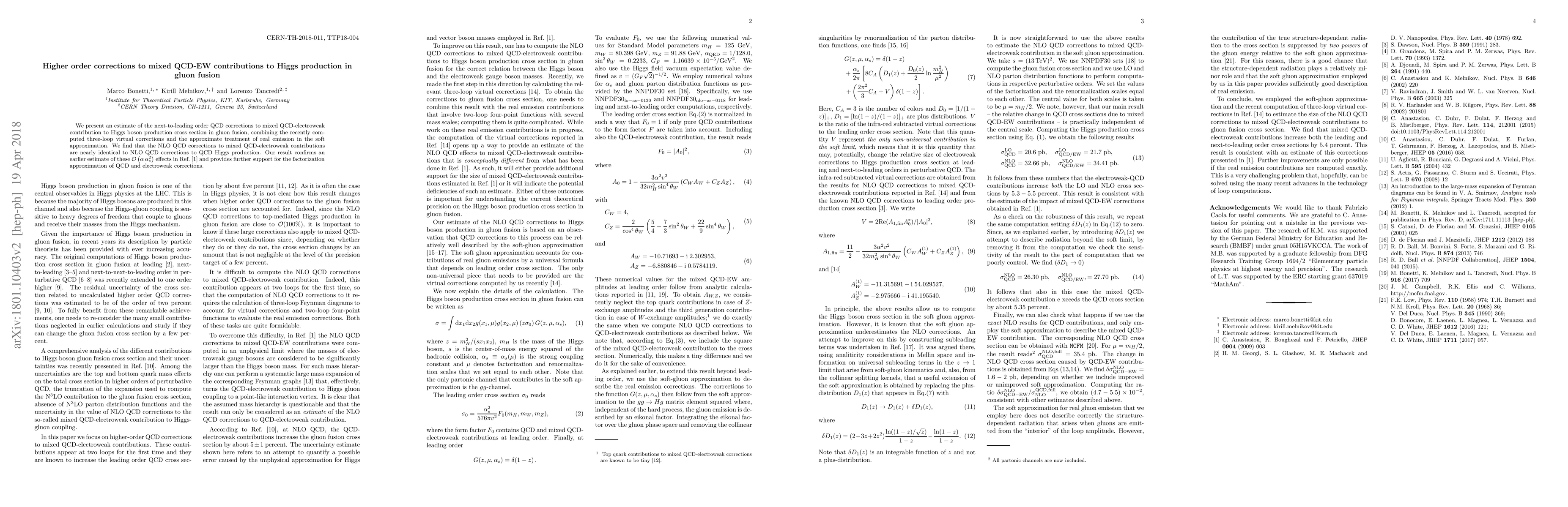 This paper estimates next-to-leading order QCD corrections to mixed QCD-electroweak contributions in Higgs production via gluon fusion, combining three-loop virtual corrections and soft real emission approximations. The findings show that these corrections are nearly identical to those for pure QCD Higgs production, supporting the factorization approximation of QCD and electroweak corrections.