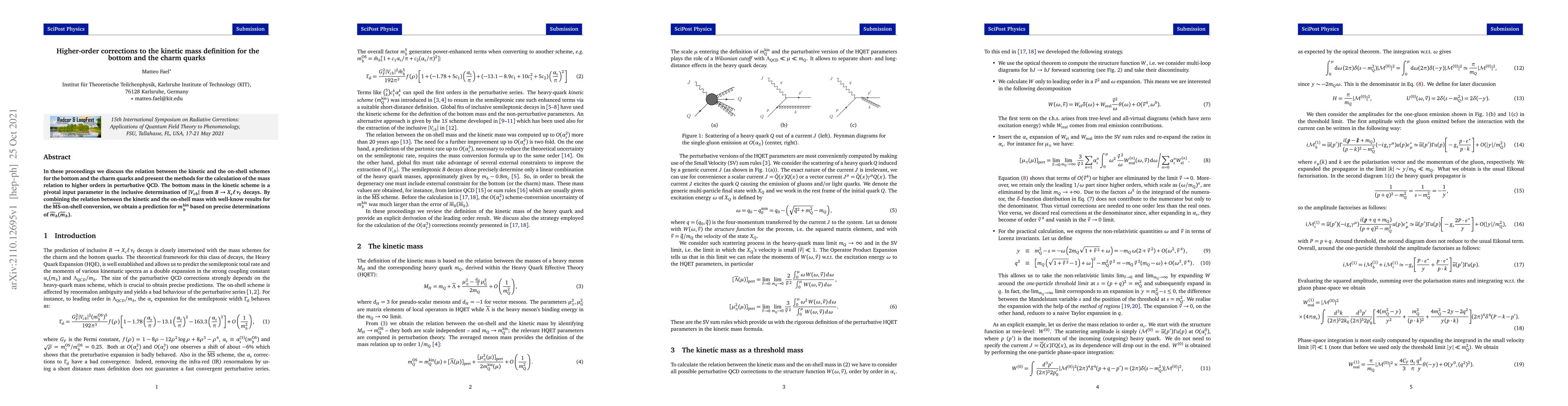 In these proceedings we discuss the relation between the kinetic and the on-shell schemes for the bottom and the charm quarks and present the methods for the calculation of the mass relation to higher orders in perturbative QCD. The bottom mass in the kinetic scheme is a pivotal input parameter in the inclusive determination of $|V_{cb}|$ from $B\to X_c \ell \nu_\ell$ decays. By combining the relation between the kinetic and the on-shell mass with well-know results for the $\overline{\mathrm{MS}}$-on-shell conversion, we obtain a prediction for $m_b^\mathrm{kin}$ based on precise determinations of $\overline{m}_b(\overline{m}_b)$.
