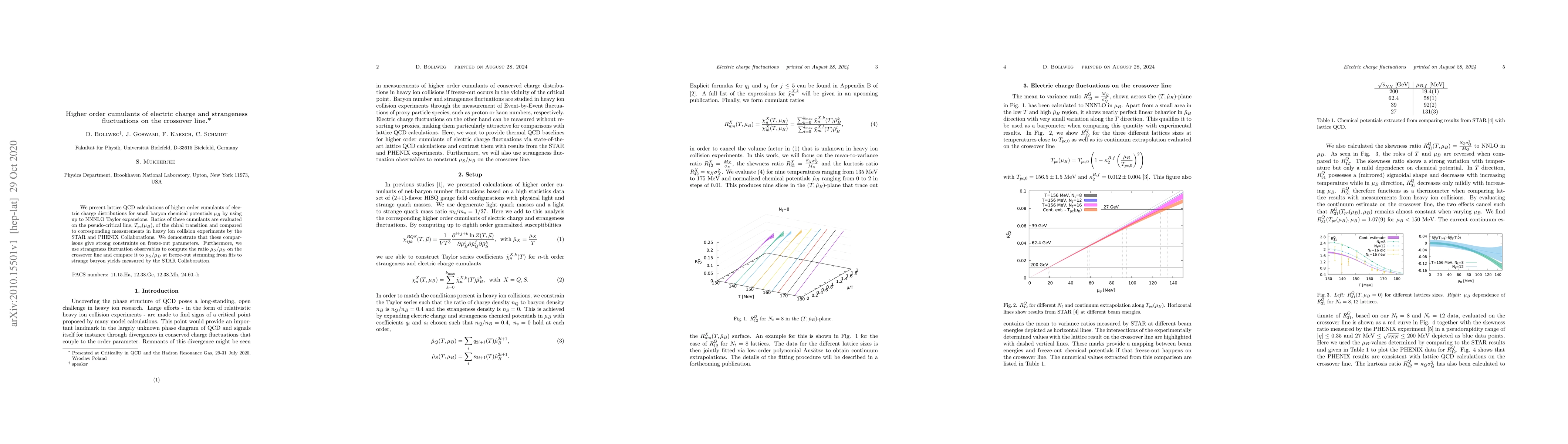 We present lattice QCD calculations of higher order cumulants of electric charge distributions for small baryon chemical potentials $\mu_B$ by using up to NNNLO Taylor expansions. Ratios of these cumulants are evaluated on the pseudo-critical line, $T_{pc}(\mu_B)$, of the chiral transition and compared to corresponding measurements in heavy ion collision experiments by the STAR and PHENIX Collaborations. We demonstrate that these comparisons give strong constraints on freeze-out parameters. Furthermore, we use strangeness fluctuation observables to compute the ratio $\mu_S/\mu_B$ on the crossover line and compare it to $\mu_S/\mu_B$ at freeze-out stemming from fits to strange baryon yields measured by the STAR Collaboration.