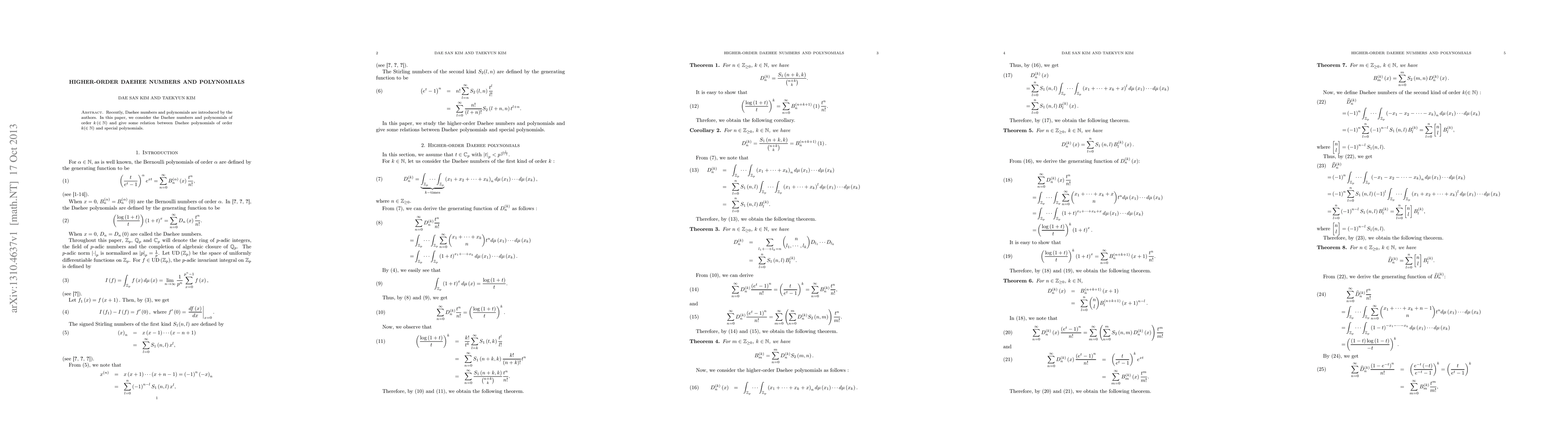 The paper introduces higher-order Daehee numbers and polynomials, establishing relations with special polynomials and Bernoulli numbers.