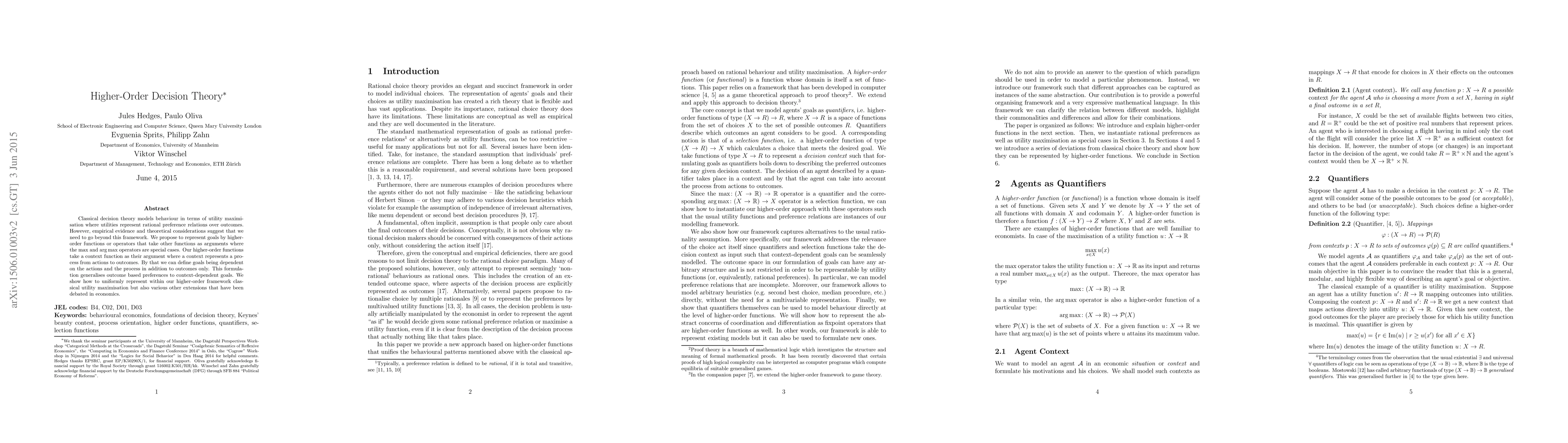 This paper proposes a higher-order decision theory that extends classical utility maximisation by incorporating context-dependent goals through higher-order functions. These functions allow for goals that depend on both actions and the processes leading to outcomes, generalising traditional outcome-based preferences.