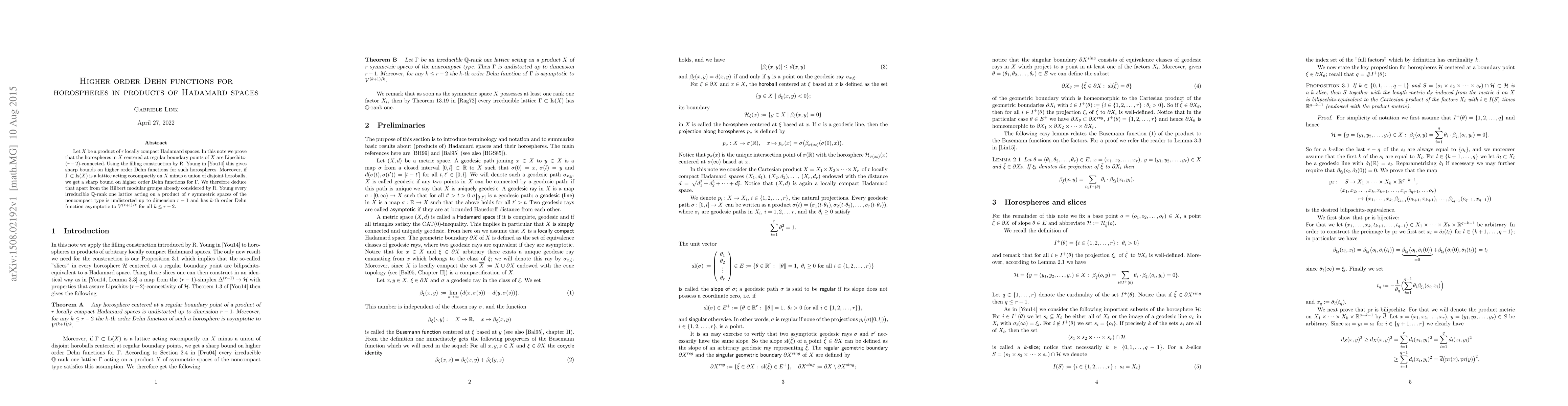 This paper proves that horospheres in products of locally compact Hadamard spaces are Lipschitz-$(r-2)$-connected, providing sharp bounds on their higher order Dehn functions. It also deduces that most irreducible $\QQ$-rank one lattices acting on such products are undistorted up to dimension $r-1$ and have Dehn functions asymptotically proportional to $V^{(k+1)/k}$ for $k\le r-2$.