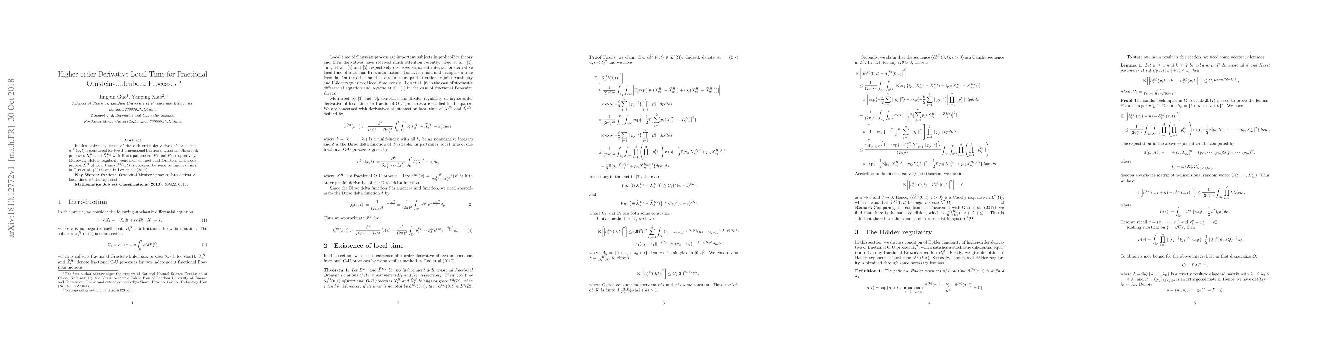 In this article, existence of the $k$-th order derivatives of local time $ \widehat{\alpha}^{(k)}(x,t)$ is considered for two d-dimensional fractional Ornstein-Uhlenbeck processes $X^{H_1}_t$ and $\widetilde{X}^{H_2}_s$ with Hurst parameters $H_1$ and $H_2$, respectively. Moreover, H$\hat{o}$lder regularity condition of fractional Ornstein-Uhlenbeck process $X^{H}_t$ of local time $\tilde{\alpha}^{(k)}(x,t)$ is obtained by some techniques using in Guo et al. (2017) and in Lou et al. (2017).