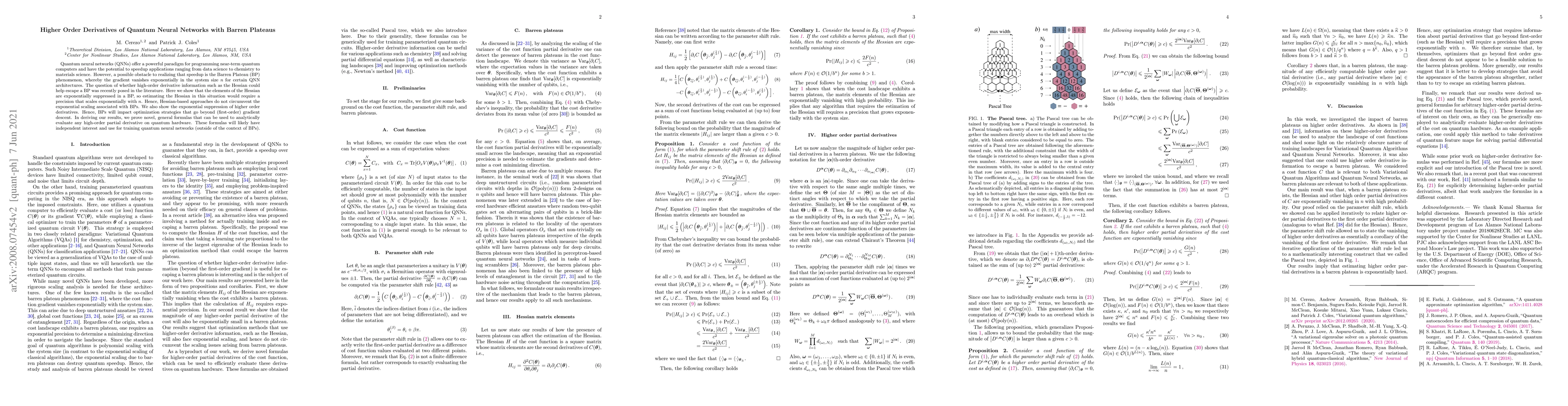Quantum neural networks (QNNs) offer a powerful paradigm for programming near-term quantum computers and have the potential to speedup applications ranging from data science to chemistry to materials science. However, a possible obstacle to realizing that speedup is the Barren Plateau (BP) phenomenon, whereby the gradient vanishes exponentially in the system size $n$ for certain QNN architectures. The question of whether high-order derivative information such as the Hessian could help escape a BP was recently posed in the literature. Here we show that the elements of the Hessian are exponentially suppressed in a BP, so estimating the Hessian in this situation would require a precision that scales exponentially with $n$. Hence, Hessian-based approaches do not circumvent the exponential scaling associated with BPs. We also show the exponential suppression of higher order derivatives. Hence, BPs will impact optimization strategies that go beyond (first-order) gradient descent. In deriving our results, we prove novel, general formulas that can be used to analytically evaluate any high-order partial derivative on quantum hardware. These formulas will likely have independent interest and use for training quantum neural networks (outside of the context of BPs).