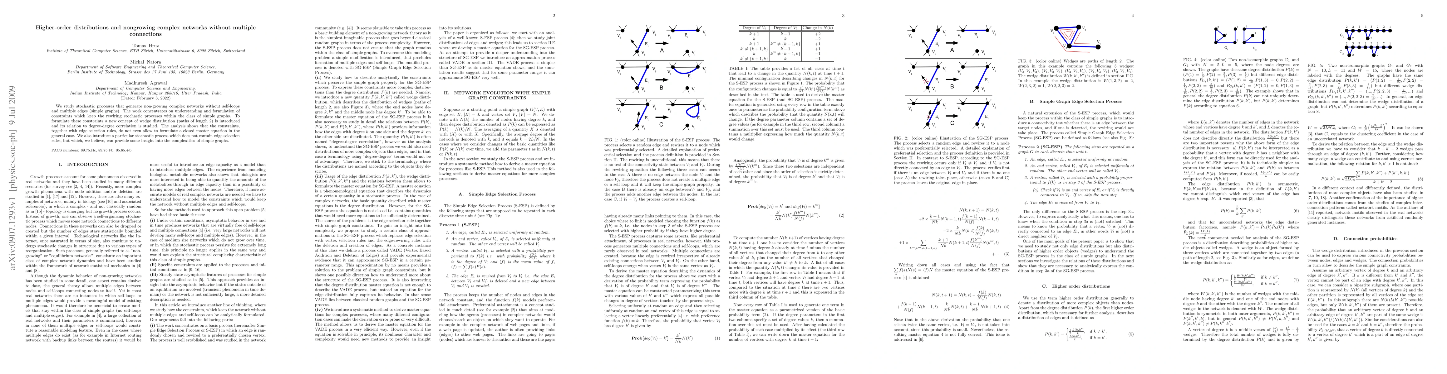We study stochastic processes that generate non-growing complex networks without self-loops and multiple edges (simple graphs). The work concentrates on understanding and formulation of constraints which keep the rewiring stochastic processes within the class of simple graphs. To formulate these constraints a new concept of wedge distribution (paths of length 2) is introduced and its relation to degree-degree correlation is studied. The analysis shows that the constraints, together with edge selection rules, do not even allow to formulate a closed master equation in the general case. We also introduce a particular stochastic process which does not contain edge selection rules, but which, we believe, can provide some insight into the complexities of simple graphs.