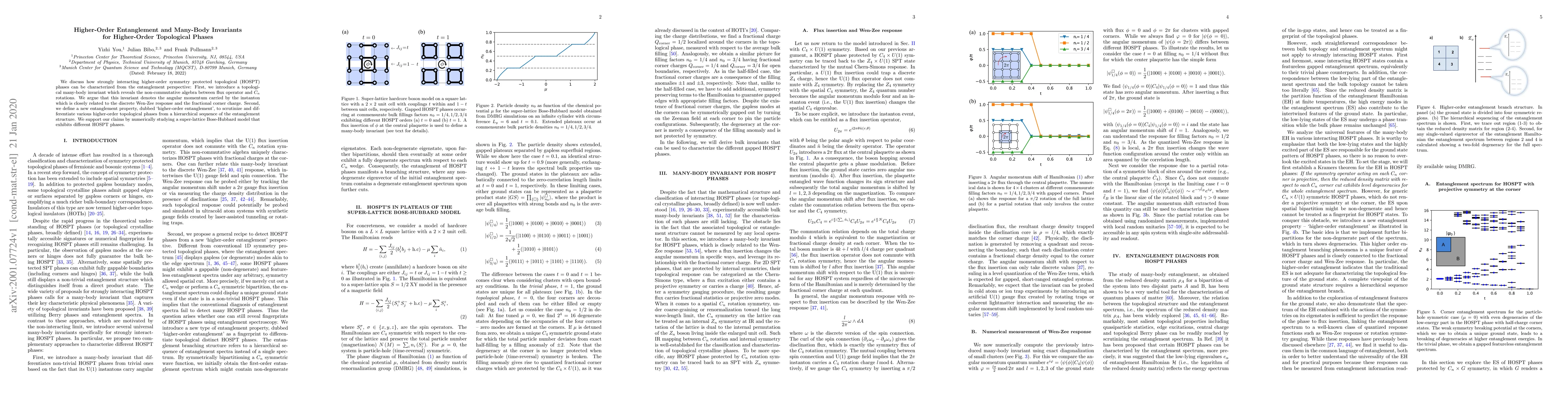 This paper introduces a topological many-body invariant to characterize higher-order symmetry protected topological phases, revealing the non-commutative algebra between flux operators and $C_n$ rotations. It also defines "higher-order entanglement" to distinguish various higher-order topological phases based on their hierarchical entanglement structure, supported by numerical studies on a super-lattice Bose-Hubbard model.