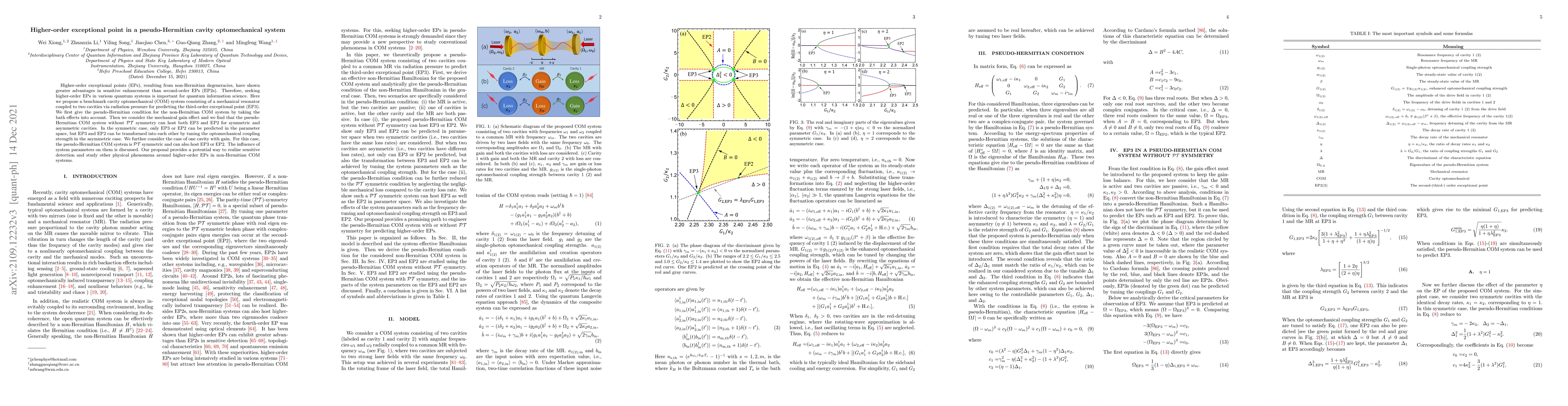 This paper proposes a cavity optomechanical system to predict the third-order exceptional point (EP3) for enhanced sensitivity in quantum information science. It explores the pseudo-Hermitian condition and discusses how tuning system parameters can realize EP3 and EP2 in both symmetric and asymmetric cavity configurations.