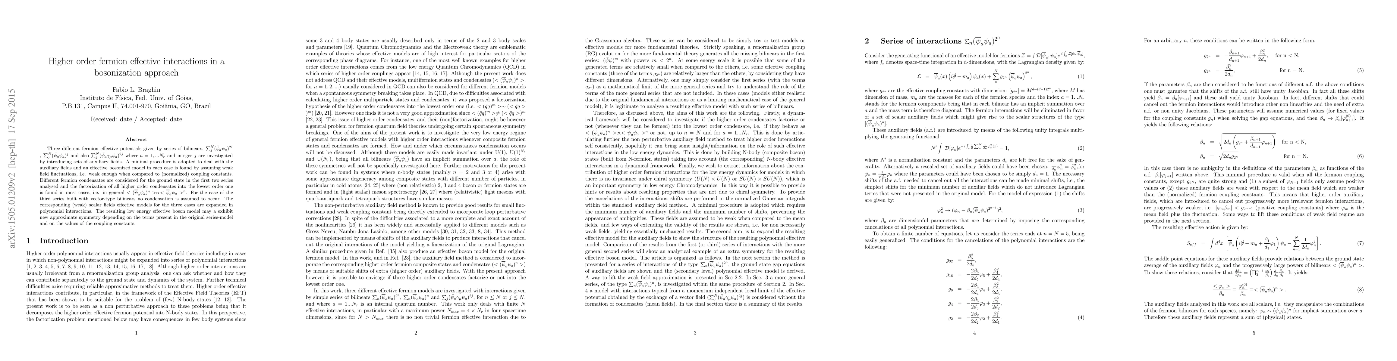 Three different fermion effective potentials given by series of bilinears, $\sum_j^N (\bar{\psi}_a \psi_a)^{2^j}$ , $\sum_j^N (\bar{\psi}_a \psi_a)^{j}$ and also $\sum_j^N (\bar{\psi}_a \gamma_\mu \psi_a)^{2j}$ where $a=1,...N_r$ and integer $j$ are investigated by introducing sets of auxiliary fields. A mininal procedure is adopted to deal with the auxiliary fields and an effective bosonized model in each case is found by assuming weak field fluctuations, i.e. weak enough when compared to (normalized) coupling constants. Different fermion condensates are considered for the ground state in the first two series analysed and the factorization of all higher order condensates into the lowest order one is found in most cases, i.e. in general $<(\overline{\psi}_a \psi_a)^n> \propto <\bar{\psi}_a \psi_a>^n$. For the case of the third series built with vector-type bilinears no condensation is assumed to occur. The corresponding (weak) scalar fields effective models for the three cases are expanded in polynomial interactions. The resulting low energy effective boson model may a exhibit new approximate symmetry depending on the terms present in the original series-model and on the values of the coupling constants.