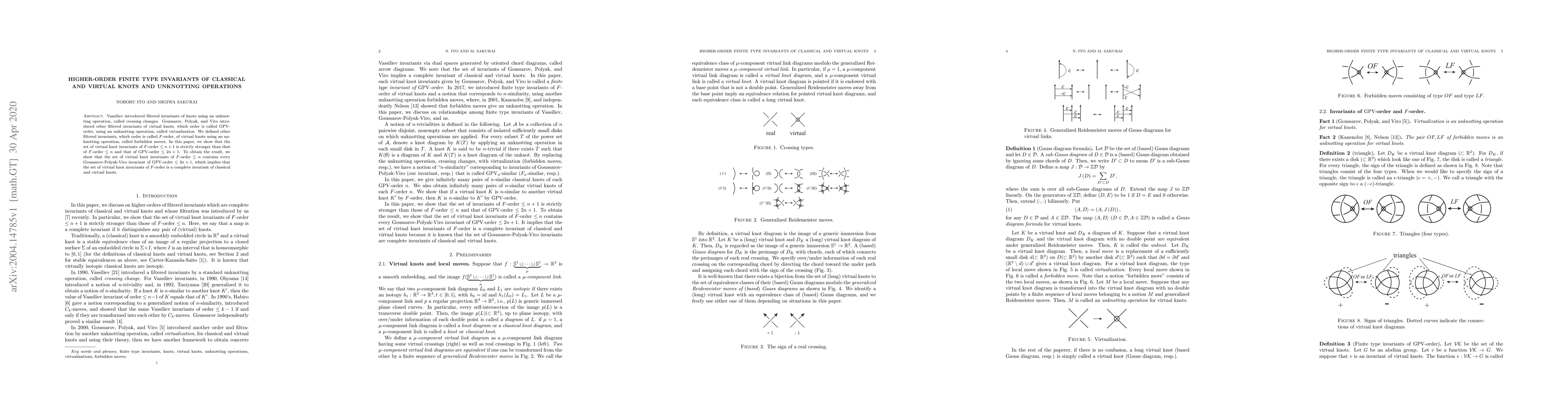 Vassiliev introduced filtered invariants of knots using an unknotting operation, called crossing changes. Goussarov, Polyak, and Viro introduced other filtered invariants of virtual knots, which order is called GPV-order, using an unknotting operation, called virtualization. We defined other filtered invariants, which order is called $F$-order, of virtual knots using an unknotting operation, called forbidden moves. In this paper, we show that the set of virtual knot invariants of $F$-order $\le n+1$ is strictly stronger than that of $F$-order $\le n$ and that of GPV-order $\le 2n+1$. To obtain the result, we show that the set of virtual knot invariants of $F$-order $\le n$ contains every Goussarov-Polyak-Viro invariant of GPV-order $\le 2n+1$, which implies that the set of virtual knot invariants of $F$-order is a complete invariant of classical and virtual knots.