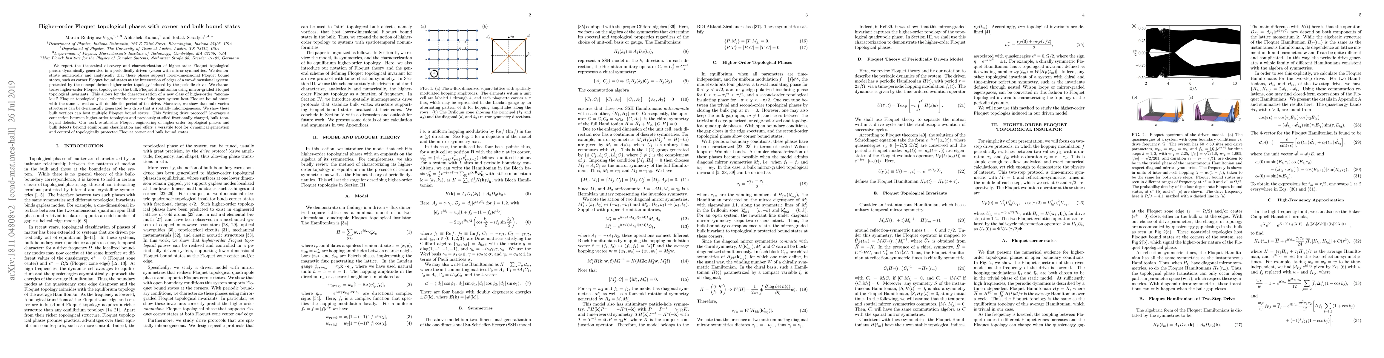 This paper introduces higher-order Floquet topological phases in periodically driven systems, demonstrating the existence of lower-dimensional Floquet bound states at corners and dynamically generated bulk vortices. It characterizes these phases using mirror-graded invariants and proposes a "stirring drive protocol" for controlling topologically protected bound states.