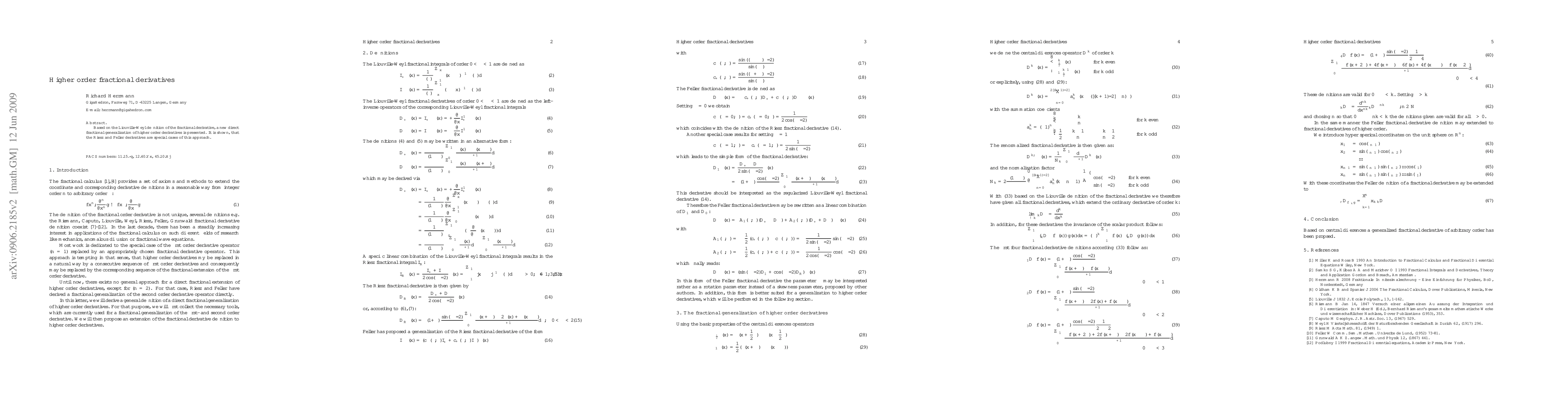 Summary: This paper introduces a novel direct generalization of higher order fractional derivatives based on the Liouville-Weyl definition, demonstrating that the Riesz and Feller derivatives are specific instances of this new approach.