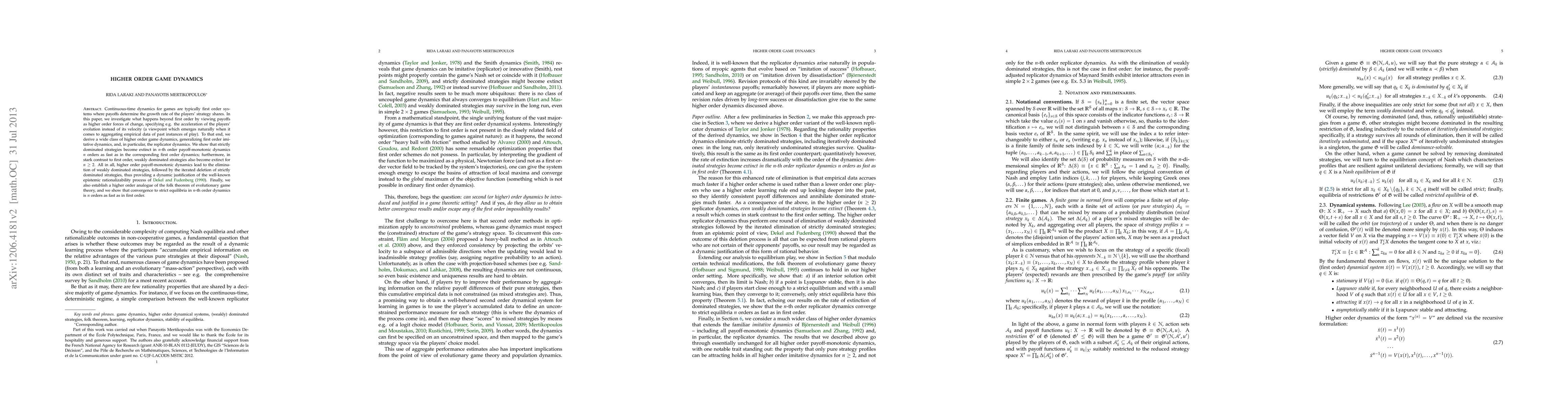 The paper introduces and analyzes a wide class of higher order game dynamics, generalizing first order imitative dynamics and the replicator dynamics.