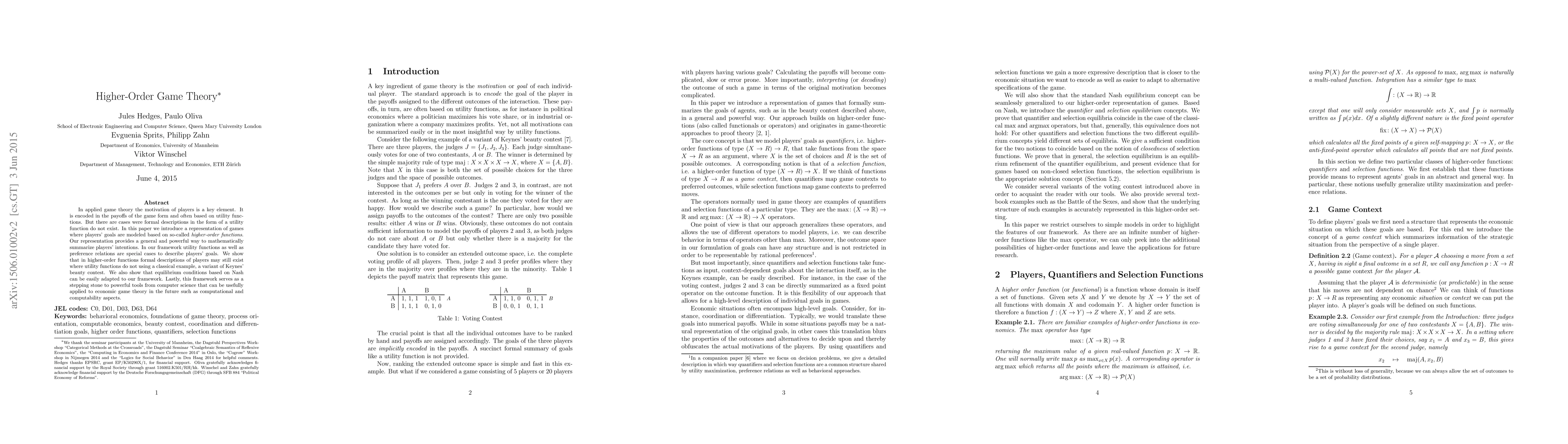 This paper introduces higher-order functions to model players' goals in game theory where traditional utility functions are inapplicable, providing a general framework that encompasses both utility functions and preference relations. It demonstrates the framework's applicability through a variant of Keynes' beauty contest and suggests its potential integration with computational tools from computer science.