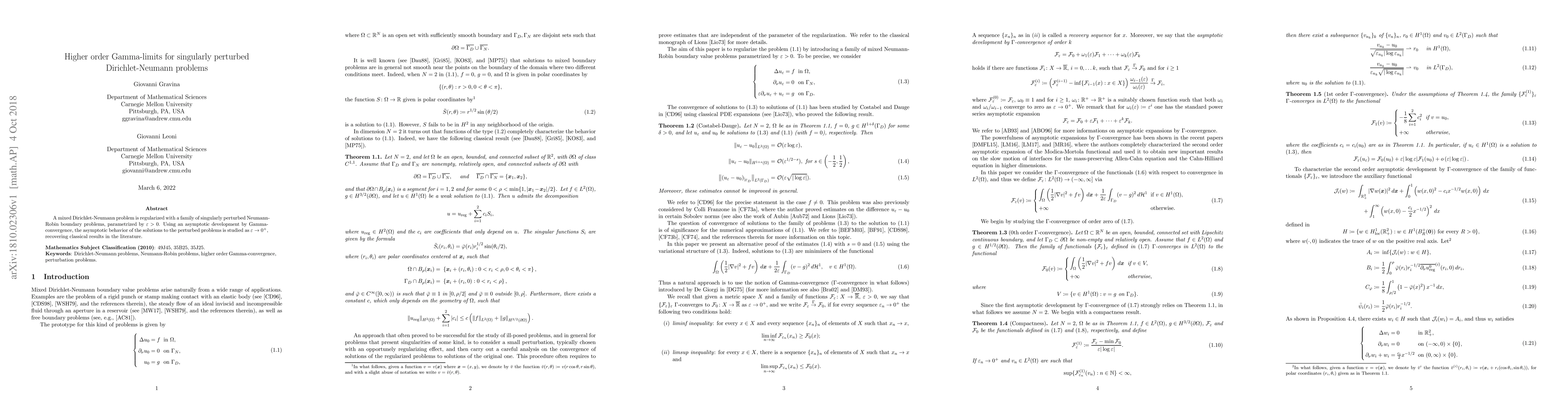 A mixed Dirichlet-Neumann problem is regularized with a family of singularly perturbed Neumann-Robin boundary problems, parametrized by $\varepsilon > 0$. Using an asymptotic development by Gamma-convergence, the asymptotic behavior of the solutions to the perturbed problems is studied as $\varepsilon \to 0^+$, recovering classical results in the literature.