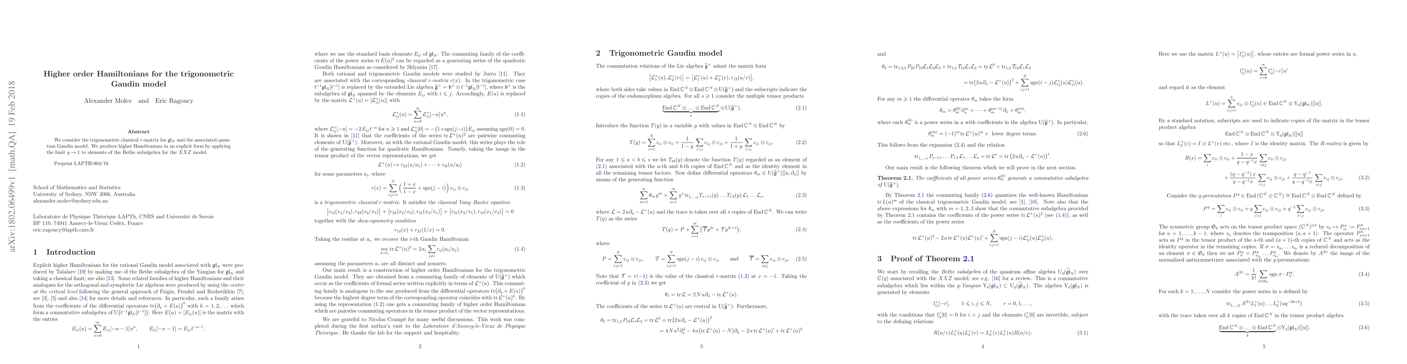 We consider the trigonometric classical $r$-matrix for $\mathfrak{gl}_N$ and the associated quantum Gaudin model. We produce higher Hamiltonians in an explicit form by applying the limit $q\to 1$ to elements of the Bethe subalgebra for the $XXZ$ model.
