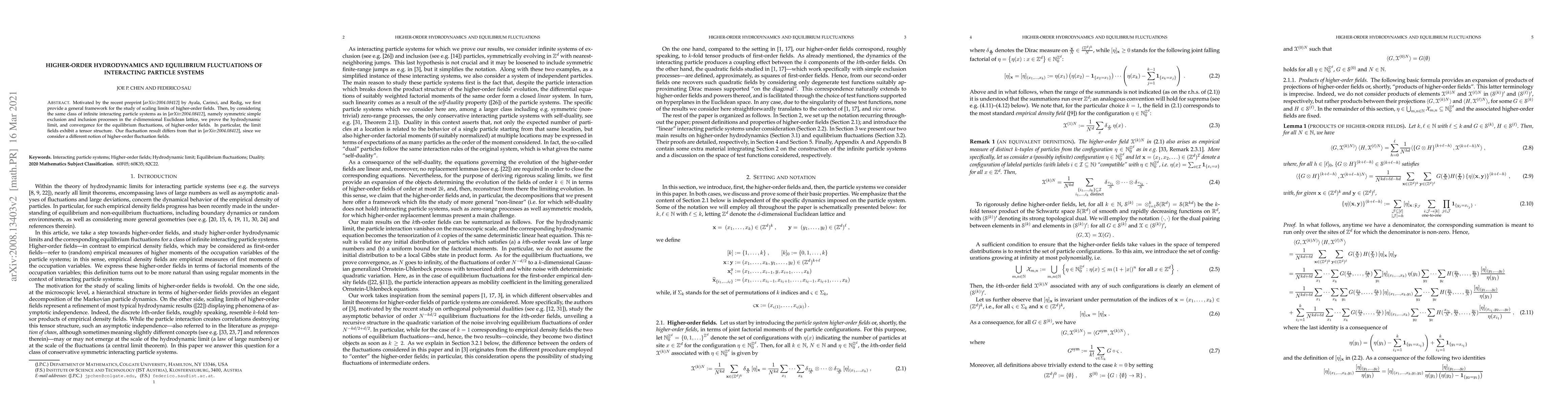Motivated by the recent preprint [arXiv:2004.08412] by Ayala, Carinci, and Redig, we first provide a general framework for the study of scaling limits of higher order fields. Then, by considering the same class of infinite interacting particle systems as in [arXiv:2004.08412], namely symmetric simple exclusion and inclusion processes in the d-dimensional Euclidean lattice, we prove the hydrodynamic limit, and convergence for the equilibrium fluctuations, of higher order fields. In particular, the limit fields exhibit a tensor structure. Our fluctuation result differs from that in [arXiv:2004.08412], since we consider a different notion of higher order fluctuation fields.