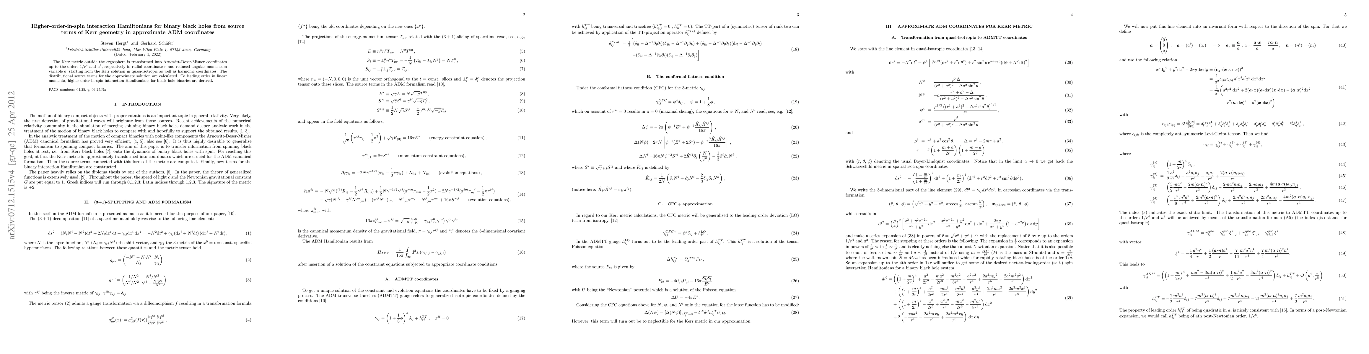 Researchers developed higher-order-in-spin interaction Hamiltonians for binary black holes, which will improve simulations of these systems, using a transformation of the Kerr metric into approximate ADM coordinates.