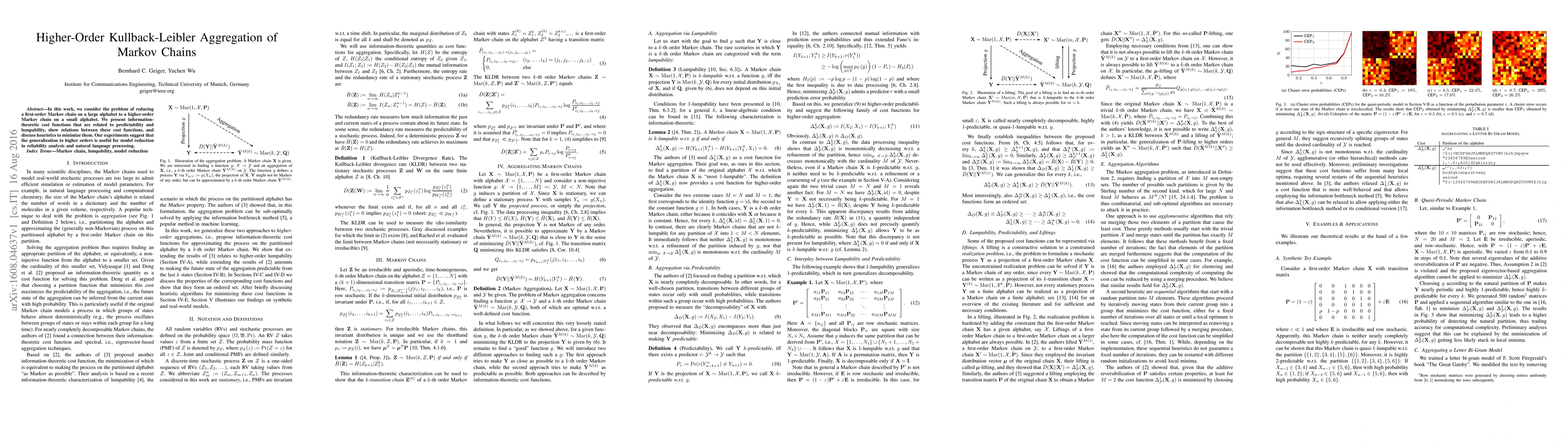 We consider the problem of reducing a first-order Markov chain on a large alphabet to a higher-order Markov chain on a small alphabet. We present information-theoretic cost functions that are related to predictability and lumpability, show relations between these cost functions, and discuss heuristics to minimize them. Our experiments suggest that the generalization to higher orders is useful for model reduction in reliability analysis and natural language processing.