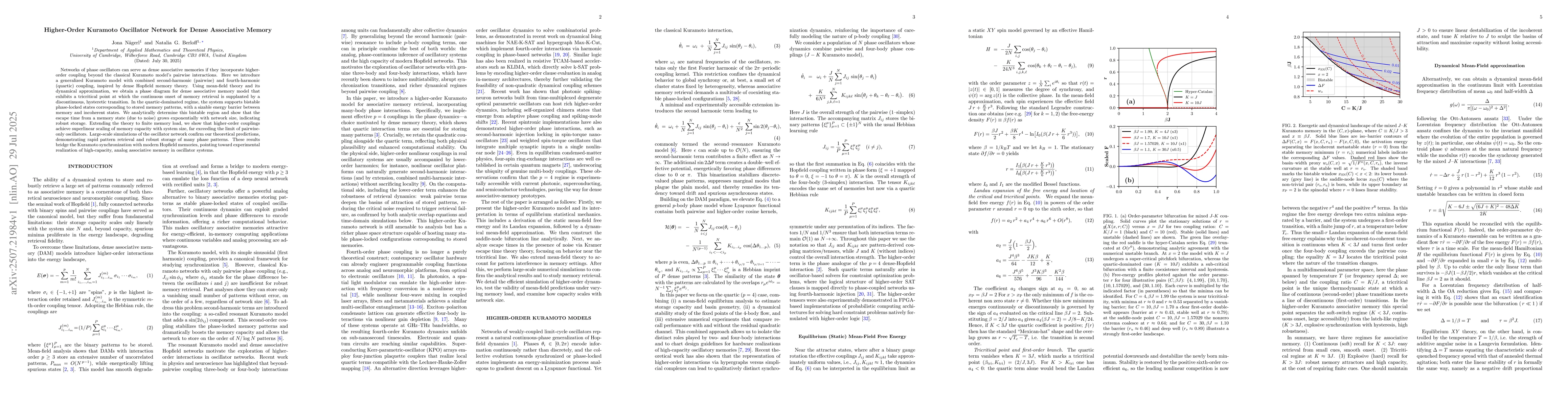 This research extends the classical Kuramoto model by incorporating higher-order interactions, leading to a significant improvement in memory storage capacity and robustness compared to pairwise-only oscillator networks.