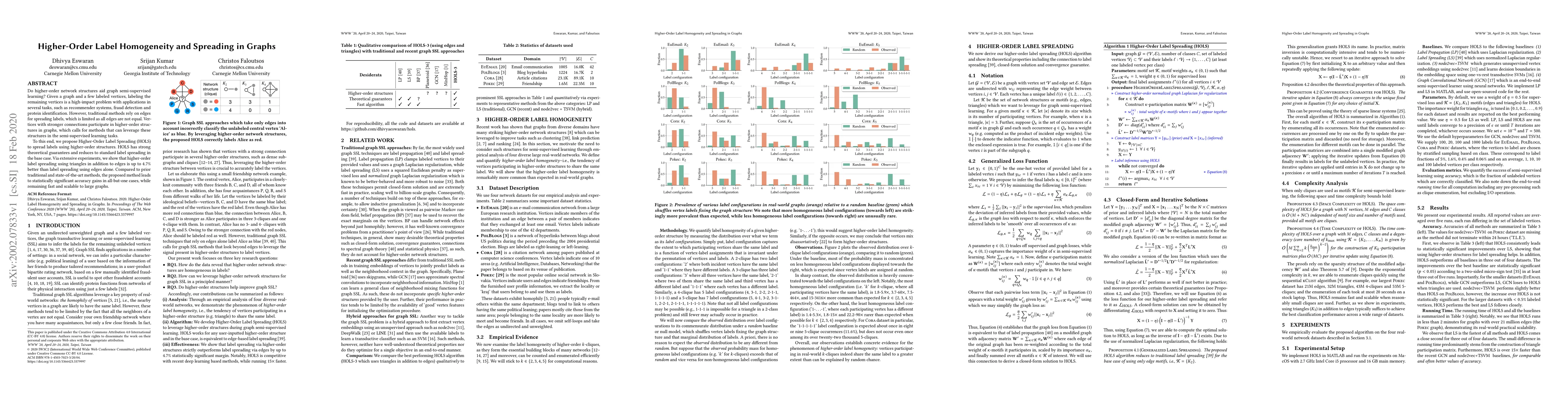 This paper proposes Higher-Order Label Spreading (HOLS) to improve graph semi-supervised learning by leveraging higher-order structures like triangles, in addition to edges. The method shows up to 4.7% better performance compared to traditional label spreading, achieving statistically significant accuracy gains while maintaining scalability.