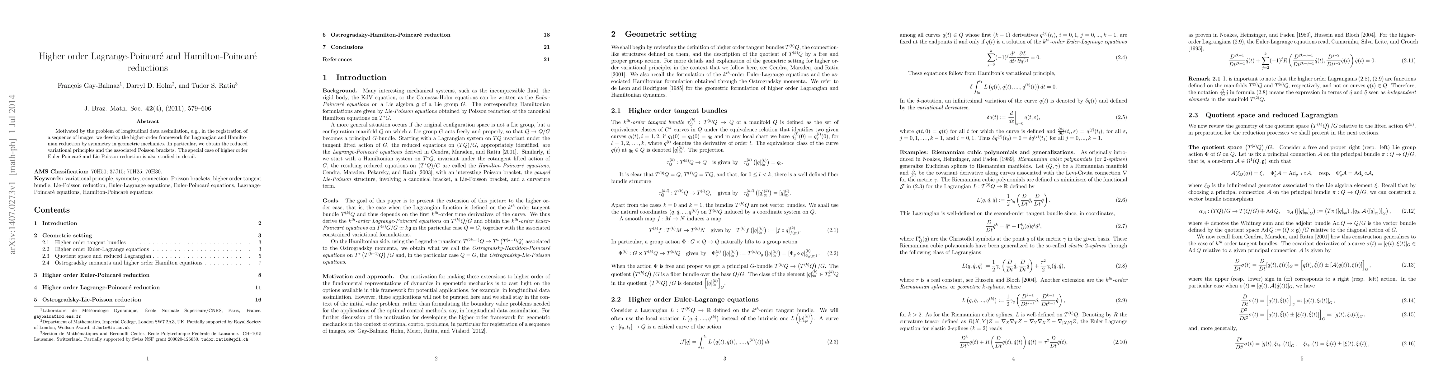 This paper introduces a higher-order framework for reducing Lagrangian and Hamiltonian mechanics to obtain reduced variational principles and Poisson brackets. It focuses on applications like image registration and Euler-Poincaré/Lie-Poisson reduction.