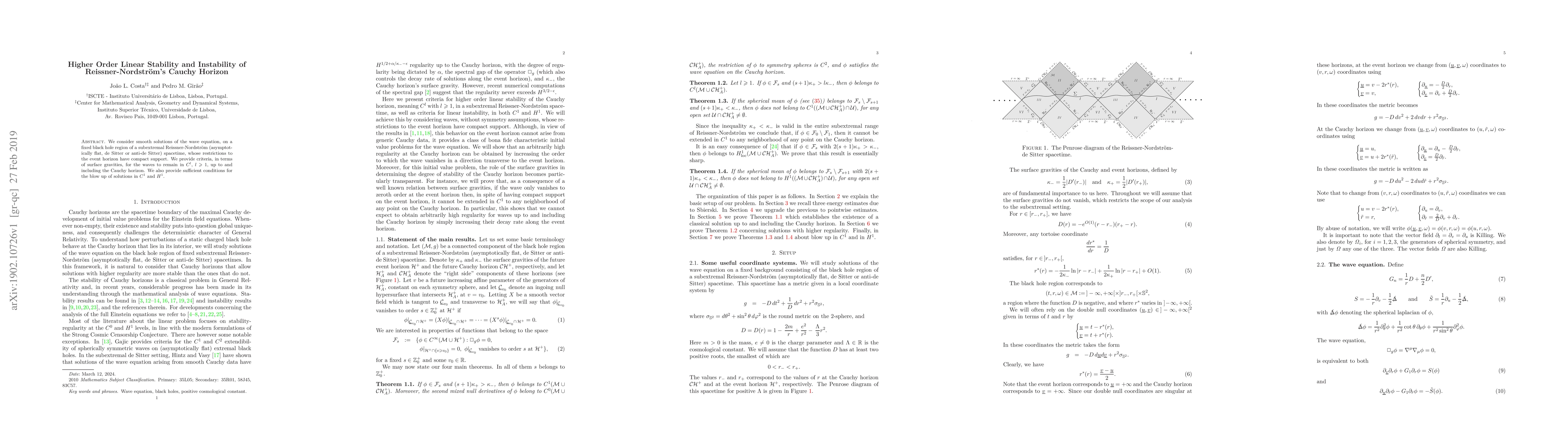 We consider smooth solutions of the wave equation, on a fixed black hole region of a subextremal Reissner-Nordstr\"om (asymptotically flat, de Sitter or anti-de Sitter) spacetime, whose restrictions to the event horizon have compact support. We provide criteria, in terms of surface gravities, for the waves to remain in $C^l$, $l\geq 1$, up to and including the Cauchy horizon. We also provide sufficient conditions for the blow up of solutions in $C^1$ and $H^1$.