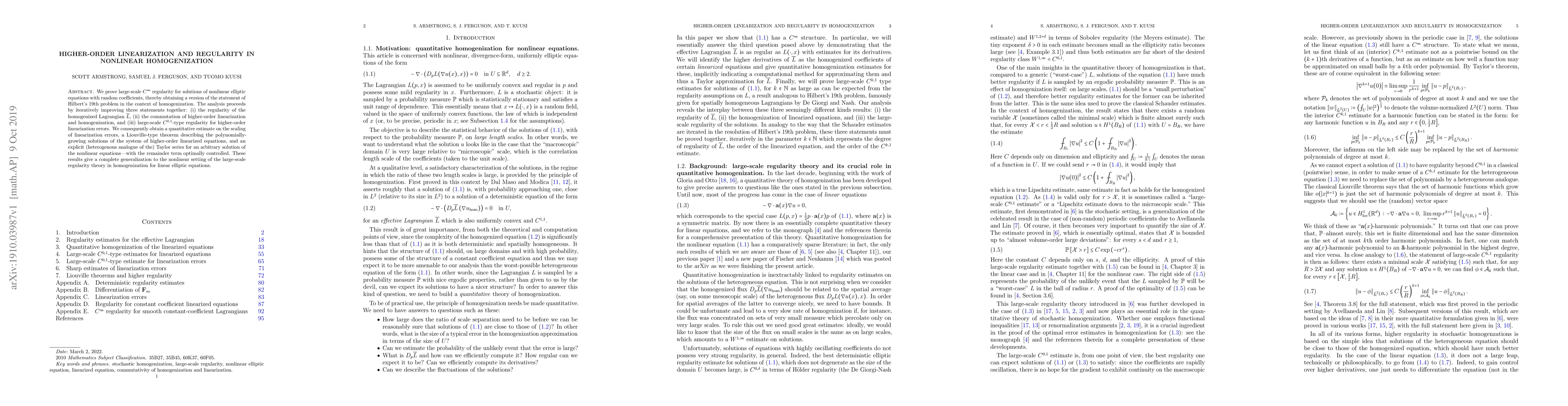 We prove large-scale $C^\infty$ regularity for solutions of nonlinear elliptic equations with random coefficients, thereby obtaining a version of the statement of Hilbert's 19th problem in the context of homogenization. The analysis proceeds by iteratively improving three statements together: (i) the regularity of the homogenized Lagrangian $\bar{L}$, (ii) the commutation of higher-order linearization and homogenization, and (iii) large-scale $C^{0,1}$-type regularity for higher-order linearization errors. We consequently obtain a quantitative estimate on the scaling of linearization errors, a Liouville-type theorem describing the polynomially-growing solutions of the system of higher-order linearized equations, and an explicit (heterogenous analogue of the) Taylor series for an arbitrary solution of the nonlinear equations---with the remainder term optimally controlled. These results give a complete generalization to the nonlinear setting of the large-scale regularity theory in homogenization for linear elliptic equations.