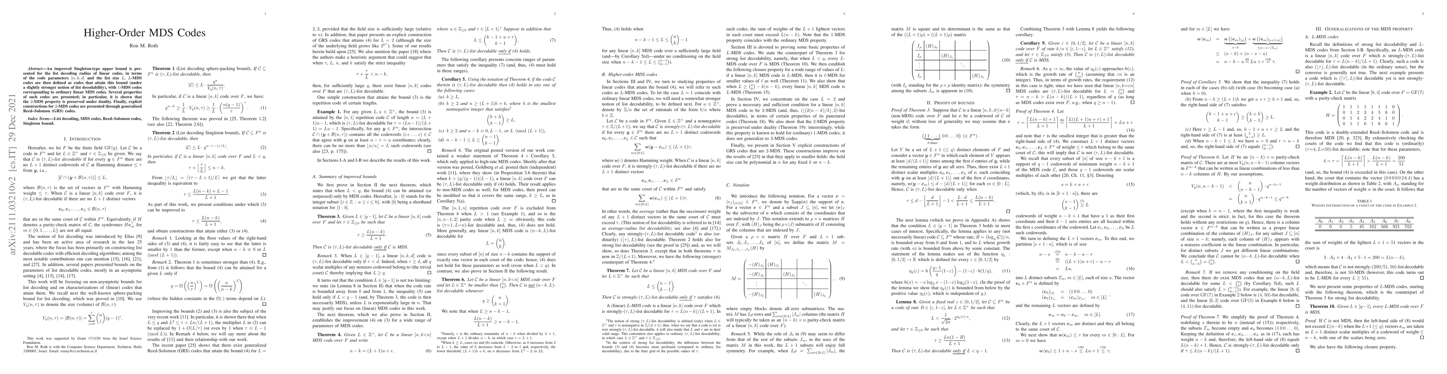 This paper presents an improved Singleton-type upper bound for the list decoding radius of linear codes and defines L-MDS codes that achieve this bound, with 2-MDS codes shown to be preserved under duality. Explicit constructions for 2-MDS codes are provided through generalized Reed-Solomon codes.