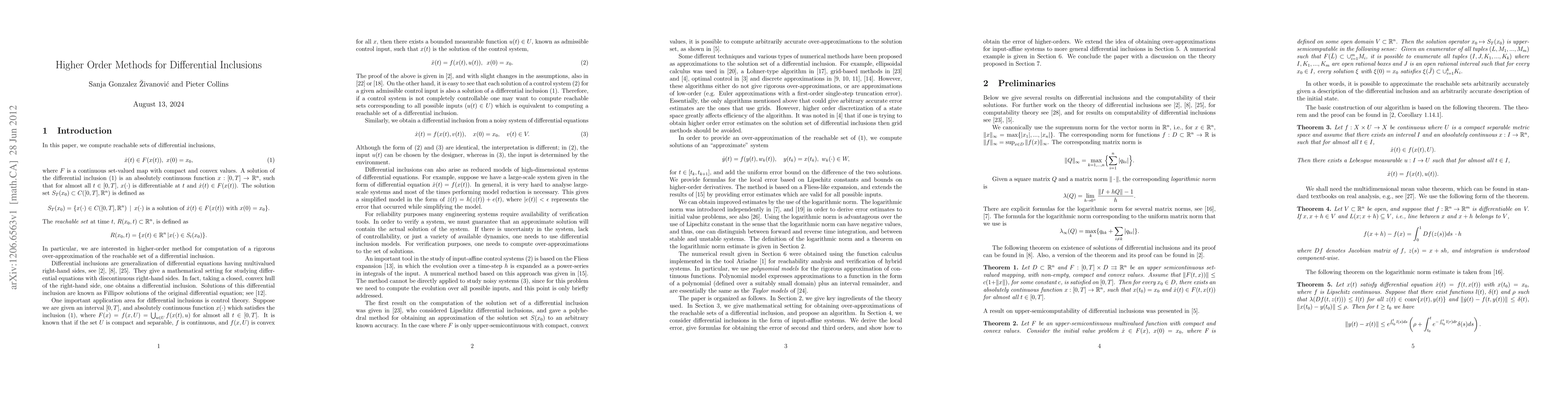 This paper introduces a high-order numerical method for rigorously approximating the reachable set of differential inclusions, providing both single-step and uniform error bounds over a finite time interval based on Lipschitz constants and higher-order derivative bounds. The method employs a Fliess-like expansion to extend previous results with valid error estimates for all inputs.