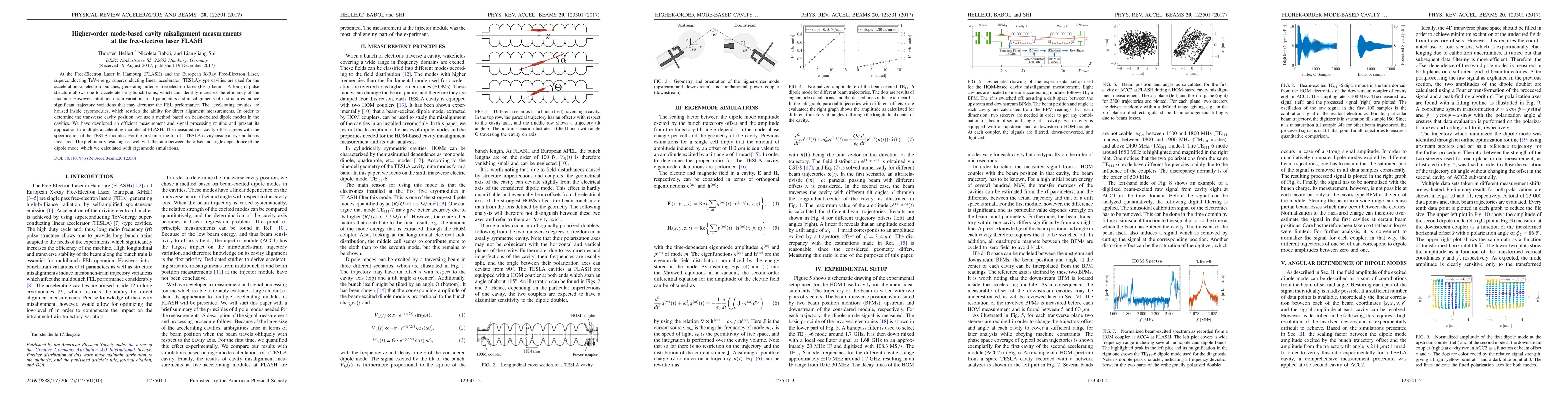 At the Free-Electron Laser in Hamburg (FLASH) and the European X-Ray Free-Electron Laser, superconducting TeV-energy superconducting linear accelerator (TESLA)-type cavities are used for the acceleration of electron bunches, generating intense free-electron laser (FEL) beams. A long rf pulse structure allows one to accelerate long bunch trains, which considerably increases the efficiency of the machine. However, intrabunch-train variations of rf parameters and misalignments of rf structures induce significant trajectory variations that may decrease the FEL performance. The accelerating cavities are housed inside cryomodules, which restricts the ability for direct alignment measurements. In order to determine the transverse cavity position, we use a method based on beam-excited dipole modes in the cavities. We have developed an efficient measurement and signal processing routine and present its application to multiple accelerating modules at FLASH. The measured rms cavity offset agrees with the specification of the TESLA modules. For the first time, the tilt of a TESLA cavity inside a cryomodule is measured. The preliminary result agrees well with the ratio between the offset and angle dependence of the dipole mode which we calculated with eigenmode simulations.