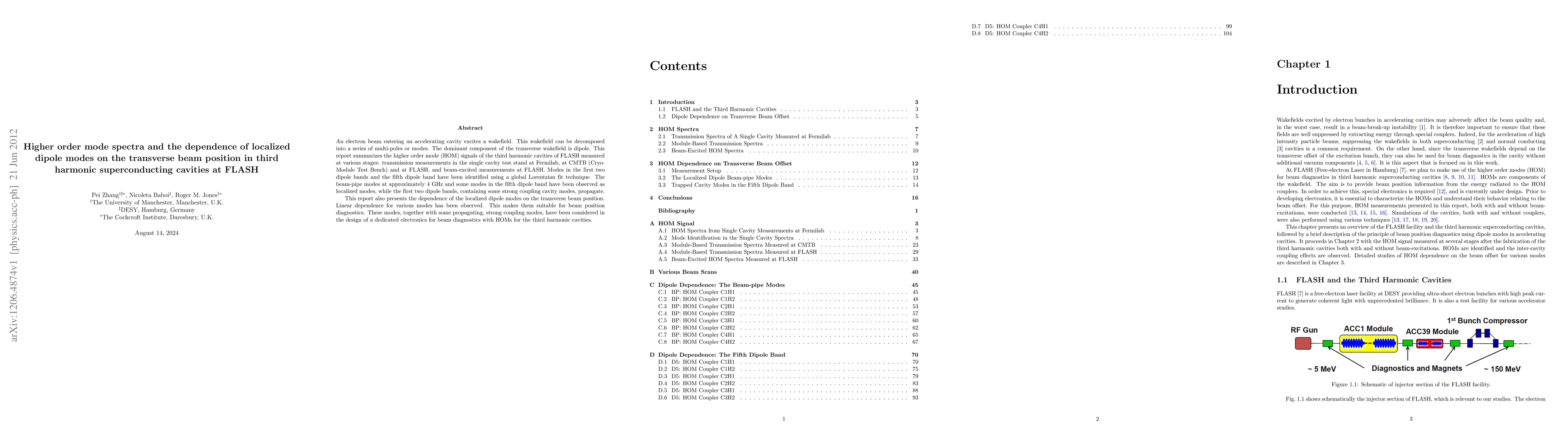 An electron beam entering an accelerating cavity excites a wakefield. This wakefield can be decomposed into a series of multi-poles or modes. The dominant component of the transverse wakefield is dipole. This report summarizes the higher order mode (HOM) signals of the third harmonic cavities of FLASH measured at various stages: transmission measurements in the single cavity test stand at Fermilab, at CMTB (Cryo-Module Test Bench) and at FLASH, and beam-excited measurements at FLASH. Modes in the first two dipole bands and the fifth dipole band have been identified using a global Lorentzian fit technique. The beam-pipe modes at approximately 4 GHz and some modes in the fifth dipole band have been observed as localized modes, while the first two dipole bands, containing some strong coupling cavity modes, propagate. This report also presents the dependence of the localized dipole modes on the transverse beam position. Linear dependence for various modes has been observed. This makes them suitable for beam position diagnostics. These modes, together with some propagating, strong coupling modes, have been considered in the design of a dedicated electronics for beam diagnostics with HOMs for the third harmonic cavities.