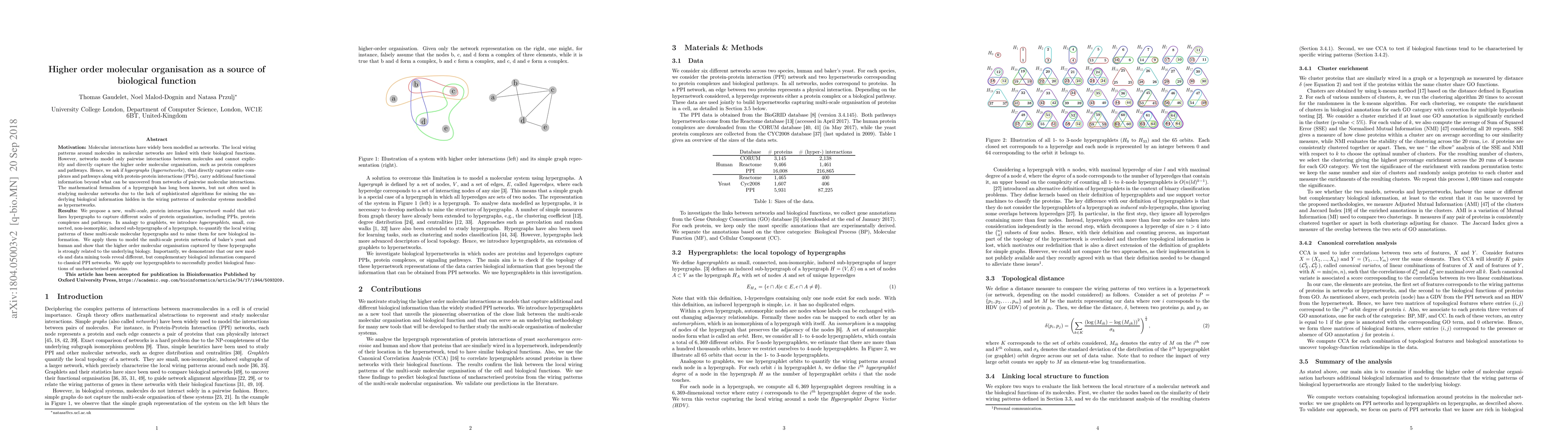 Molecular interactions have widely been modelled as networks. The local wiring patterns around molecules in molecular networks are linked with their biological functions. However, networks model only pairwise interactions between molecules and cannot explicitly and directly capture the higher order molecular organisation, such as protein complexes and pathways. Hence, we ask if hypergraphs (hypernetworks), that directly capture entire complexes and pathways along with protein-protein interactions (PPIs), carry additional functional information beyond what can be uncovered from networks of pairwise molecular interactions. The mathematical formalism of a hypergraph has long been known, but not often used in studying molecular networks due to the lack of sophisticated algorithms for mining the underlying biological information hidden in the wiring patterns of molecular systems modelled as hypernetworks. We propose a new, multi-scale, protein interaction hypernetwork model that utilizes hypergraphs to capture different scales of protein organization, including PPIs, protein complexes and pathways. In analogy to graphlets, we introduce hypergraphlets, small, connected, non-isomorphic, induced sub-hypergraphs of a hypergraph, to quantify the local wiring patterns of these multi-scale molecular hypergraphs and to mine them for new biological information. We apply them to model the multi-scale protein networks of baker yeast and human and show that the higher order molecular organisation captured by these hypergraphs is strongly related to the underlying biology. Importantly, we demonstrate that our new models and data mining tools reveal different, but complementary biological information compared to classical PPI networks. We apply our hypergraphlets to successfully predict biological functions of uncharacterised proteins.