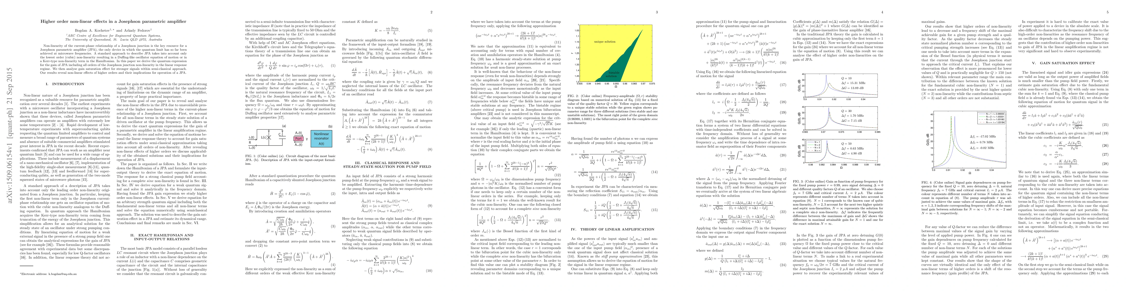 This paper derives the quantum expression for the gain of a Josephson parametric amplifier (JPA) considering all orders of the Josephson junction's non-linear current-phase relationship. It also analyzes gain saturation effects for stronger signals, revealing higher-order non-linear effects and their implications for JPA operation.