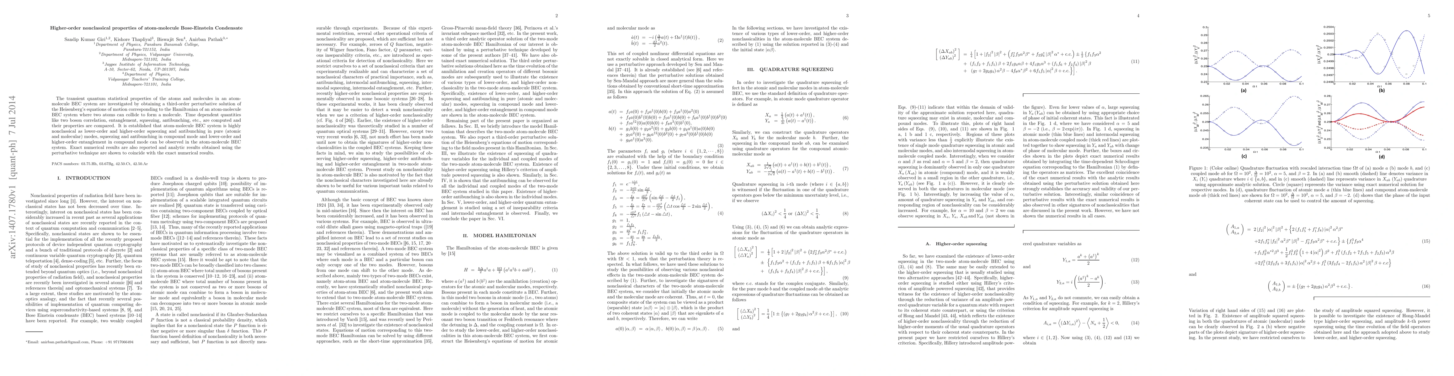 The transient quantum statistical properties of the atoms and molecules in an atom-molecule BEC system are investigated by obtaining a third-order perturbative solution of the Heisenberg's equations of motion corresponding to the Hamiltonian of an atom-molecule BEC system where two atoms can collide to form a molecule. Time dependent quantities like two boson correlation, entanglement, squeezing, antibunching, etc., are computed and their properties are compared. It is established that atom-molecule BEC system is highly nonclassical as lower-order and higher-order squeezing and antibunching in pure (atomic and molecular) modes, squeezing and antibunching in compound mode and lower-order and higher-order entanglement in compound mode can be observed in the atom-molecule BEC system. Exact numerical results are also reported and analytic results obtained using the perturbative technique are shown to coincide with the exact numerical results.