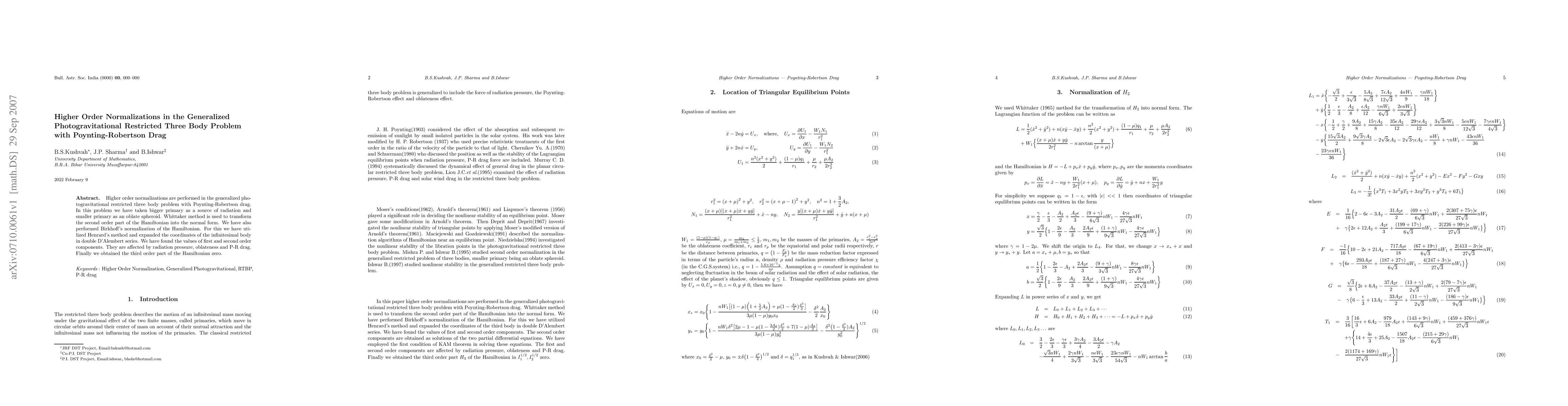 This paper investigates higher order normalizations in the generalized photogravitational restricted three body problem, incorporating Poynting-Robertson drag. It utilizes Whittaker and Birkhoff methods to transform the Hamiltonian and find the first and second order components affected by radiation pressure, oblateness, and drag, ultimately achieving a zero third order part.
