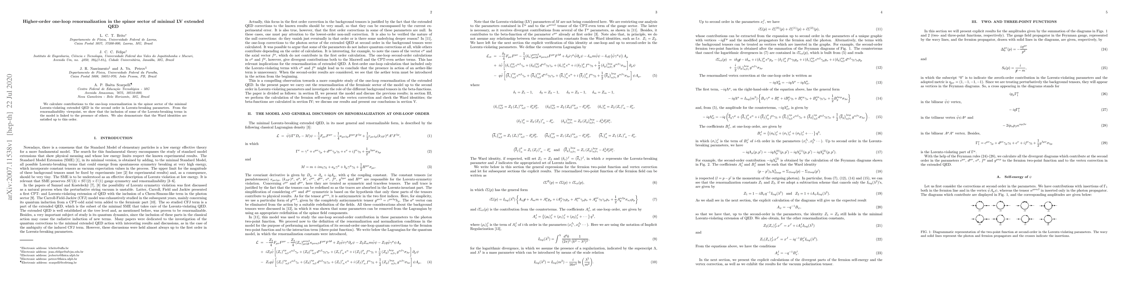 Researchers calculated contributions to one-loop renormalization in a modified version of Quantum Electrodynamics (QED) that includes Lorentz-violating terms, showing some terms' presence is linked to others, and the model satisfies certain identities up to this order.