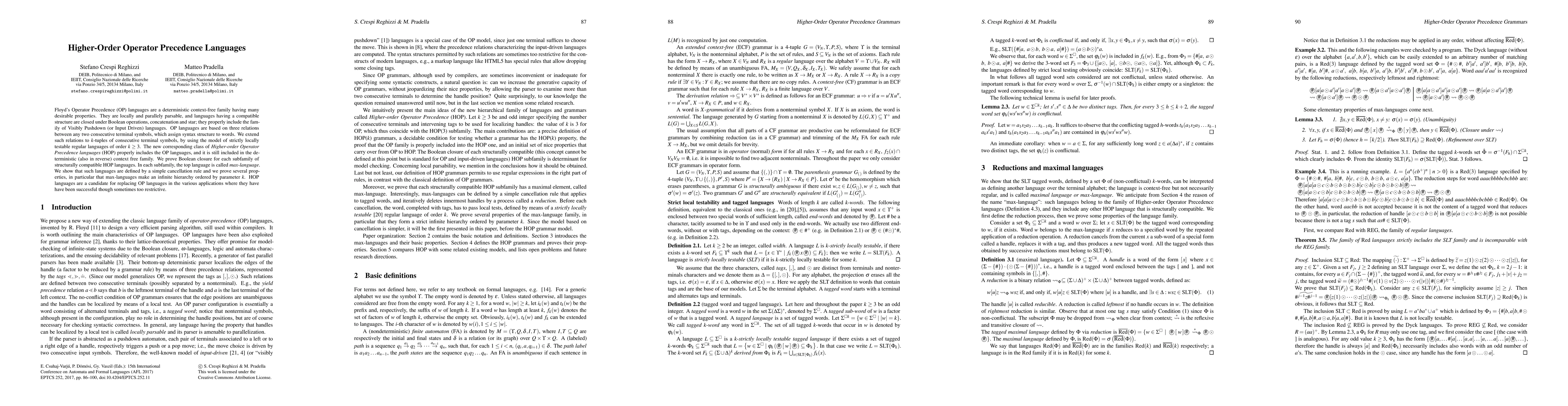 The paper introduces Higher-Order Operator Precedence (HOP) languages, extending Floyd's Operator Precedence (OP) languages to k-tuples of consecutive terminal symbols, maintaining desirable properties like Boolean closure and parallel parsability, while forming a hierarchy ordered by parameter k, suggesting they may replace OP languages in applications.