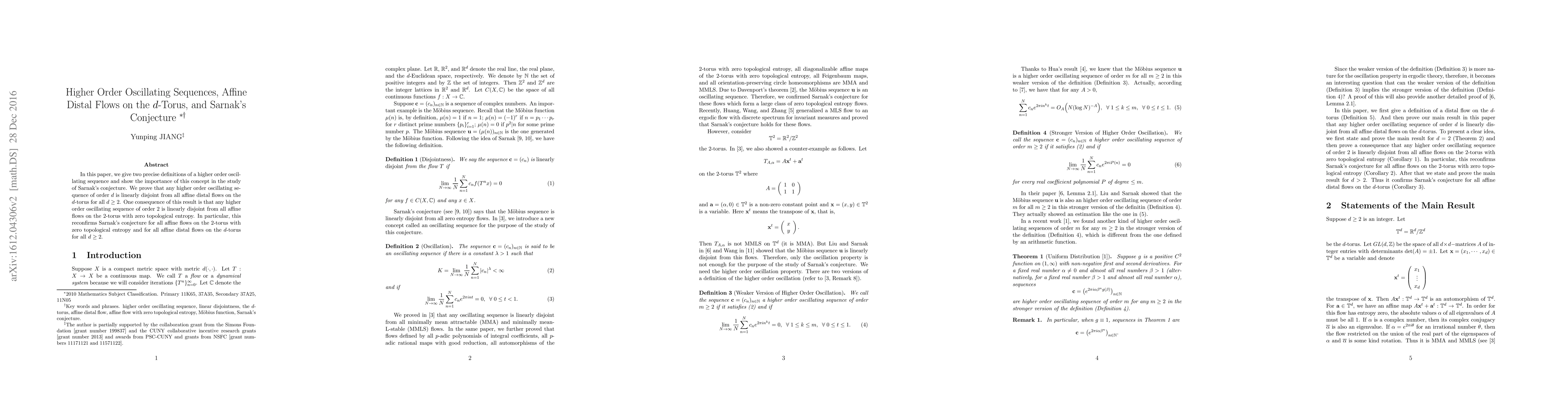 In this paper, we give two precise definitions of a higher order oscillating sequence and show the importance of this concept in the study of Sarnak's conjecture. We prove that any higher order oscillating sequence of order $d$ is linearly disjoint from all affine distal flows on the $d$-torus for all $d\geq 2$. One consequence of this result is that any higher order oscillating sequence of order $2$ is linearly disjoint from all affine flows on the $2$-torus with zero topological entropy. In particular, this reconfirms Sarnak's conjecture for all affine flows on the $2$-torus with zero topological entropy and for all affine distal flows on the $d$-torus for all $d\geq 2$.